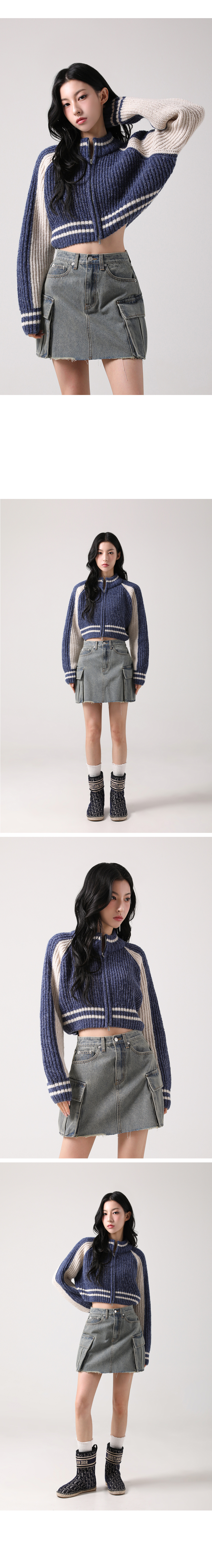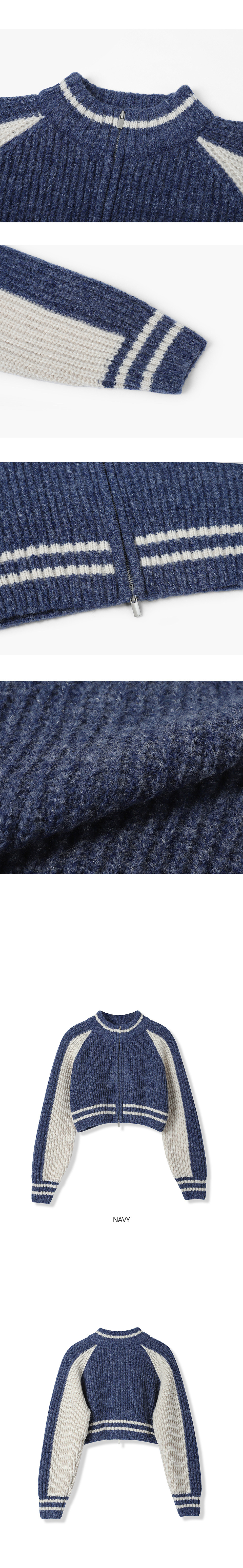 (AVANDRESS) Block Raglan Knit Zip-up NAVY