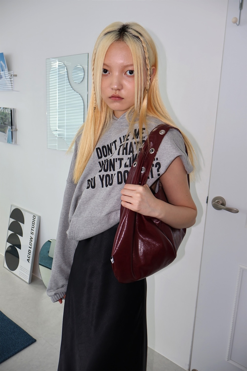 (DEPC) EYELET LEATHER BAG (WINE)