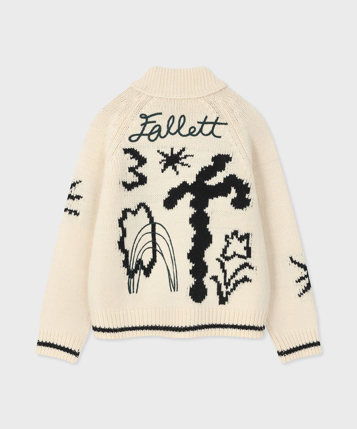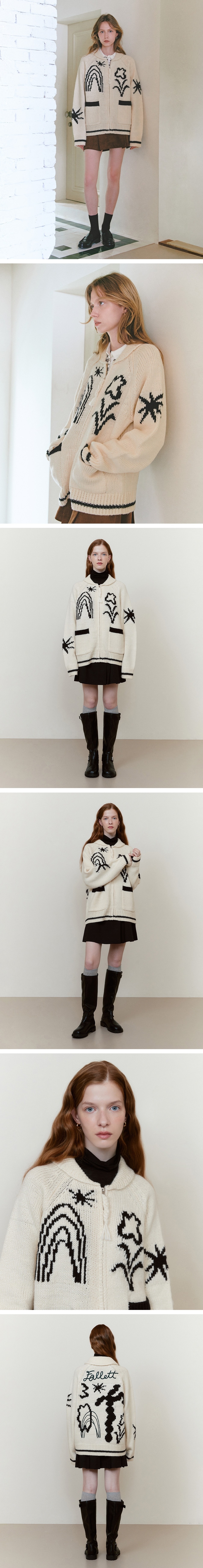 (FALLETT) Drawing Garden Cowichan Hood Zip-Up (Ivory)