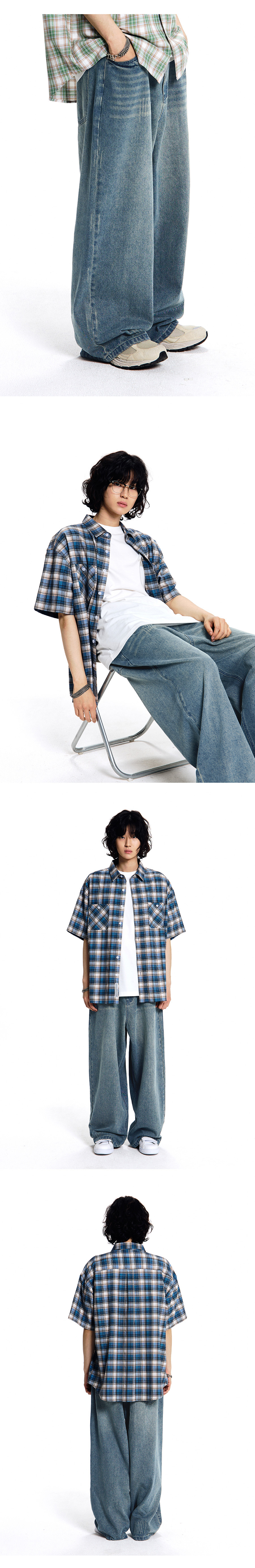 (FILLUMINATE) Damage Washed Denim Pants - Medium Blue