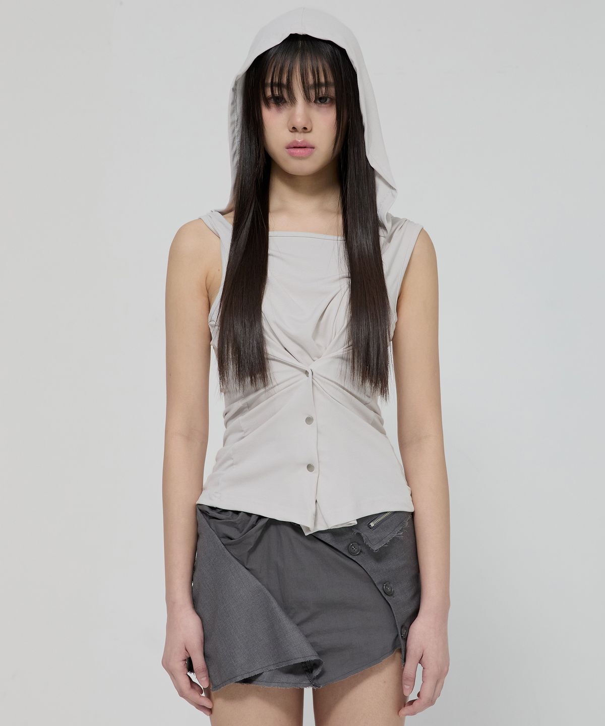 (FLARE UP) Asymmetric Snap Hoodie - 3col