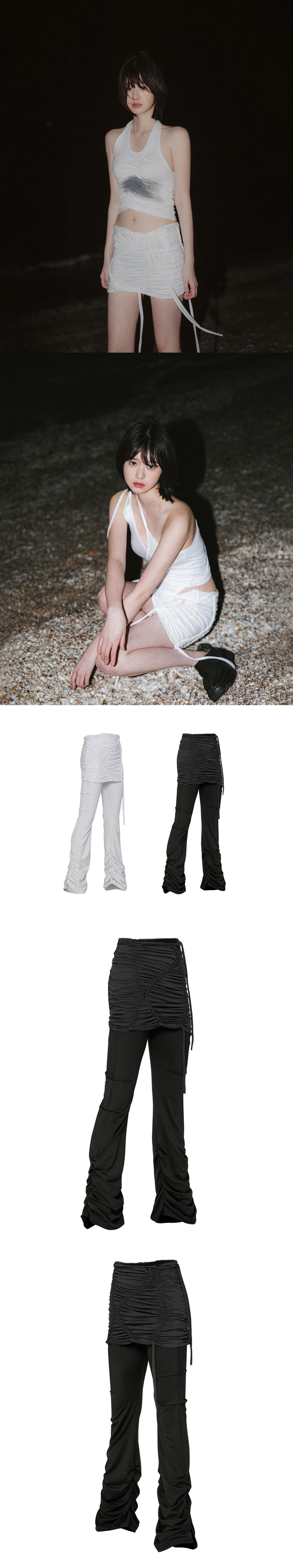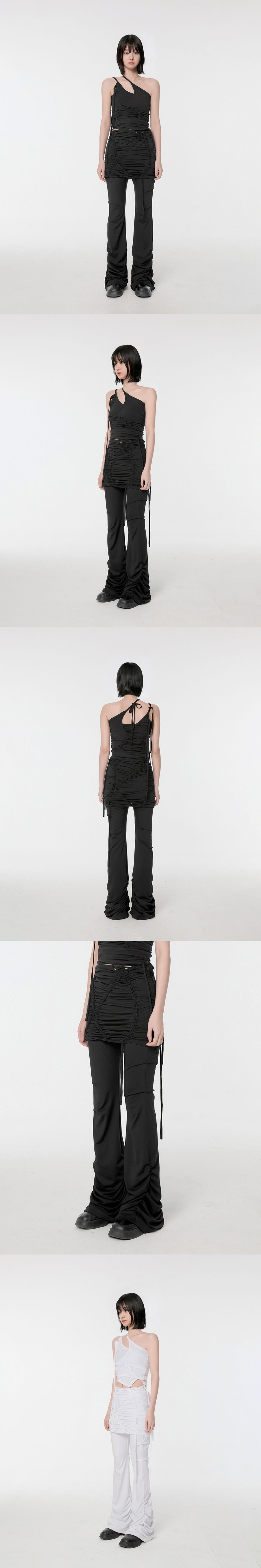 (FLARE UP) [SET] Handmade Twisted Skirt Pants (Black)