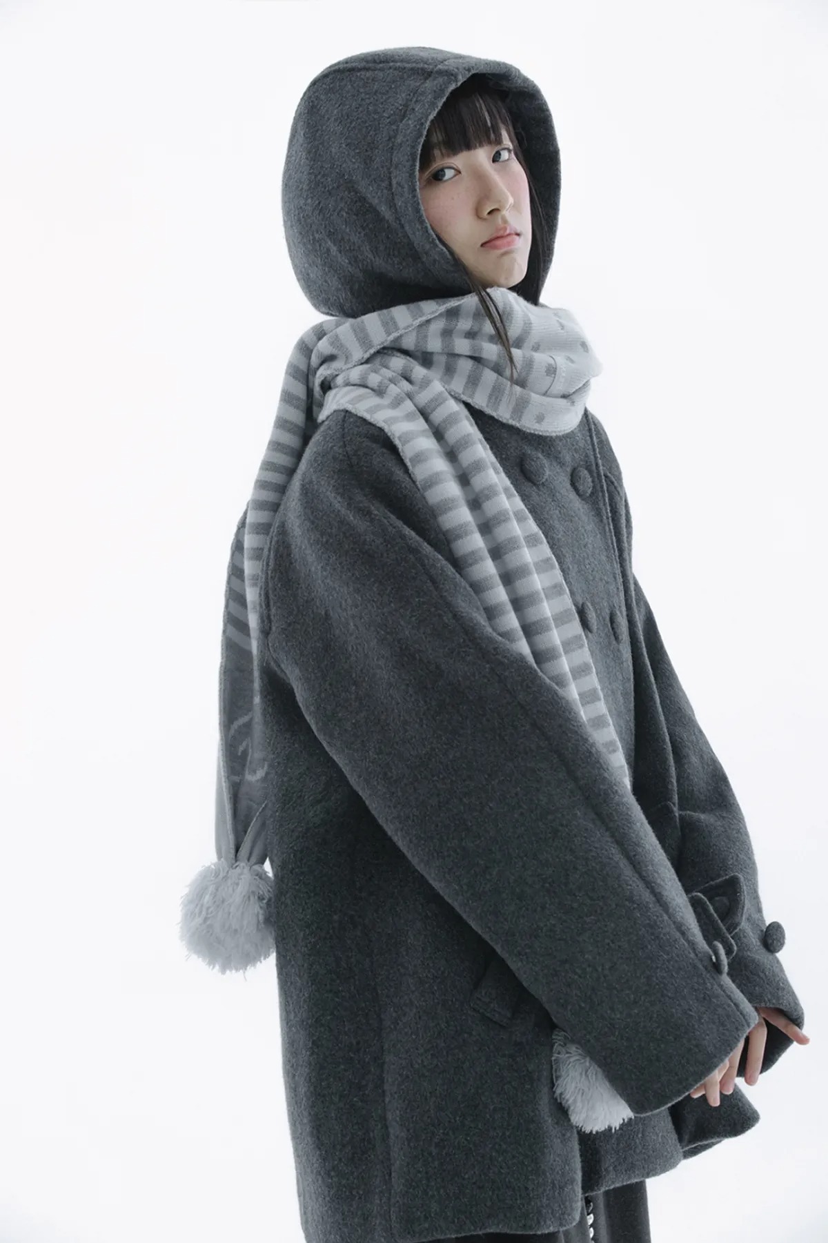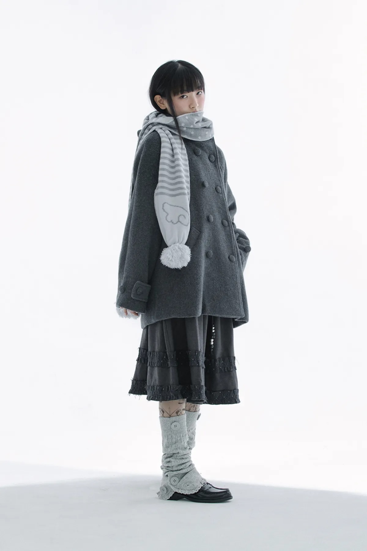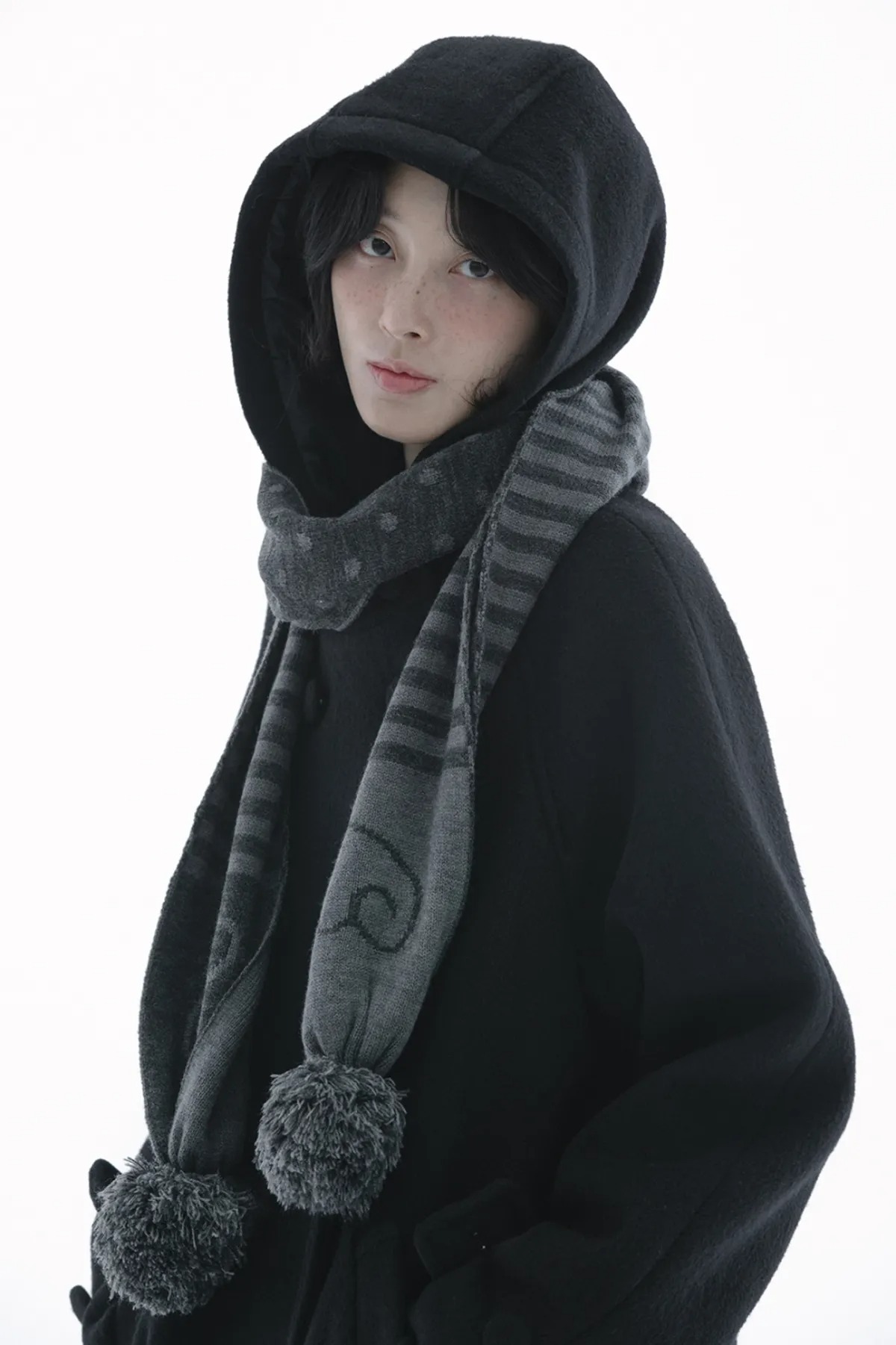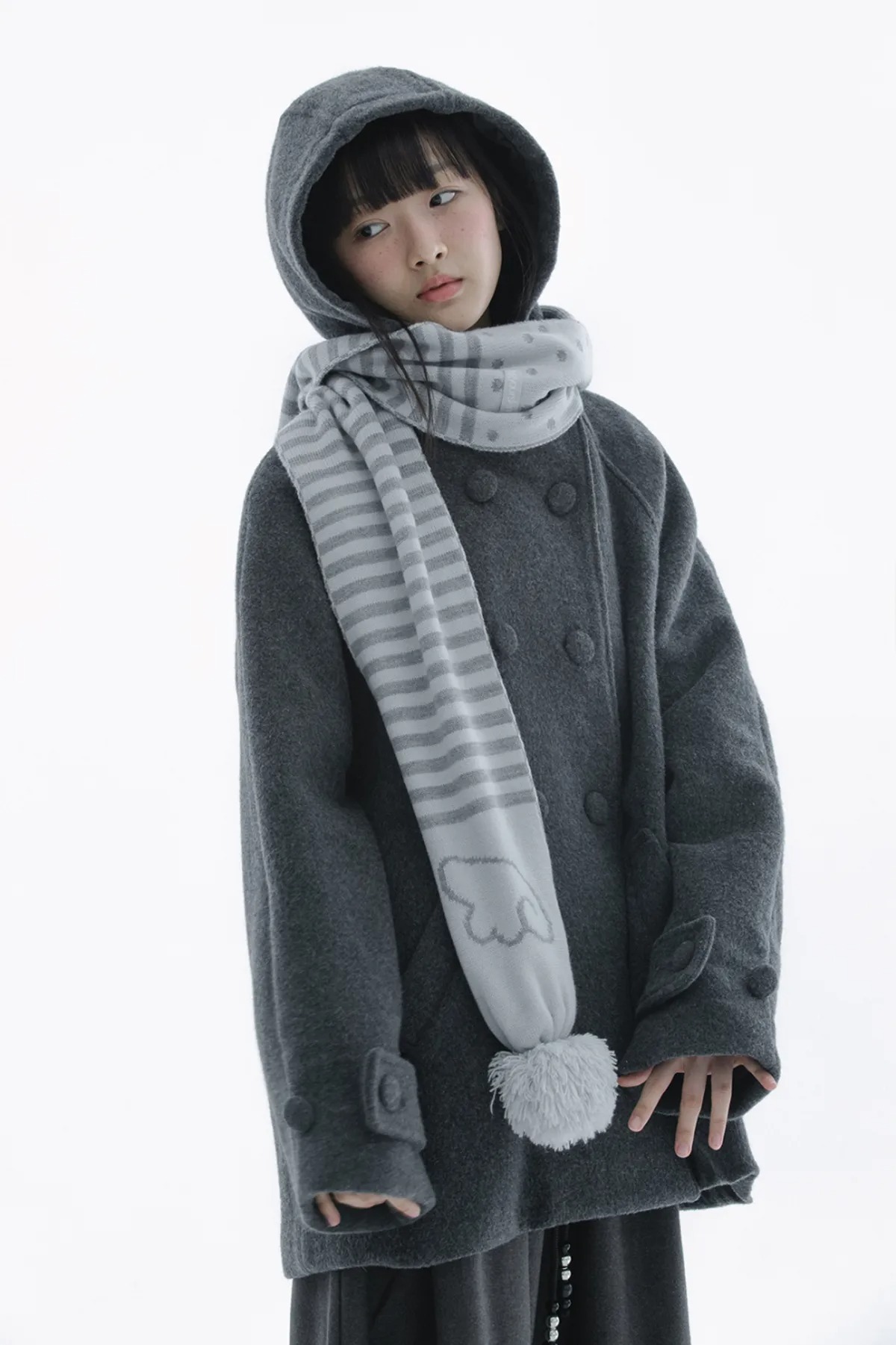 (HUG YOUR SKIN) Angel wing stripe pom-pom muffler - 2col