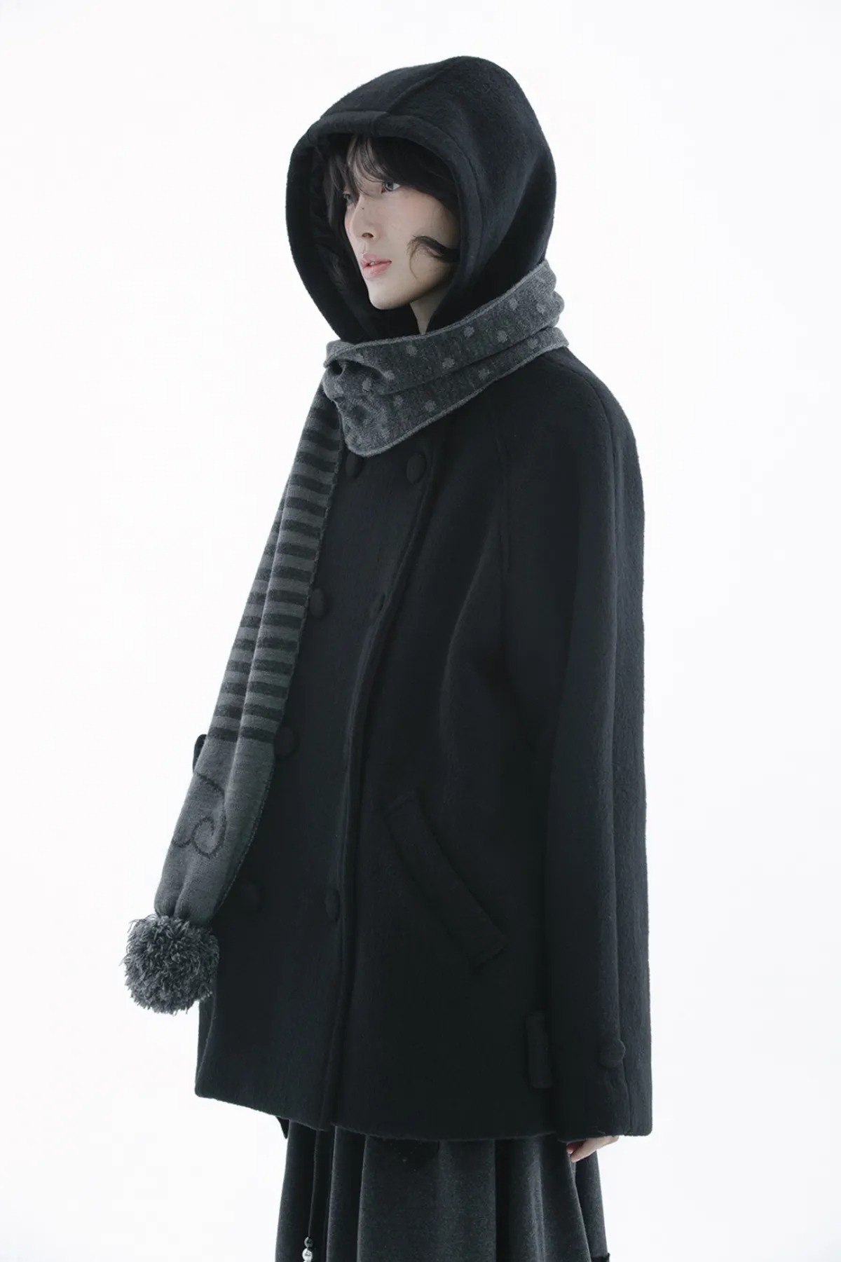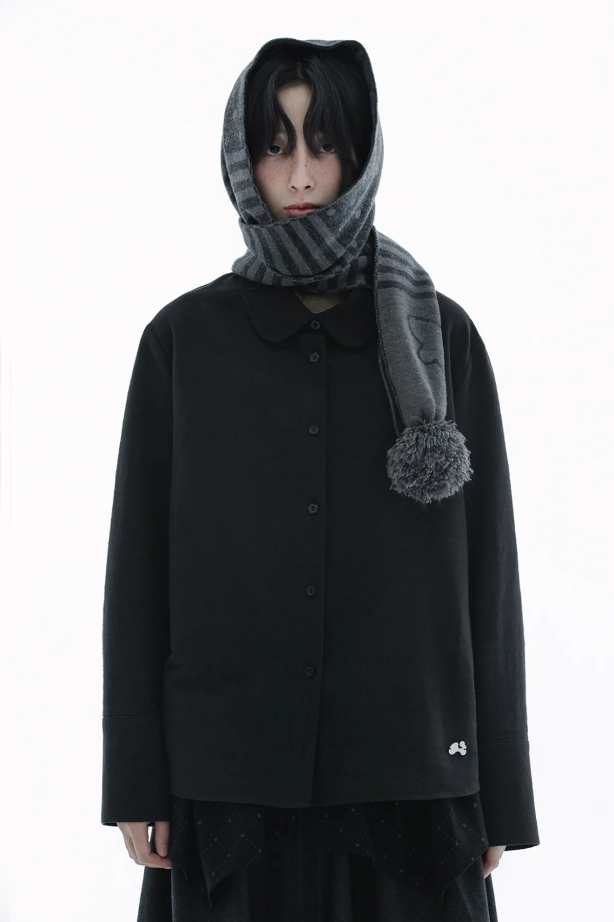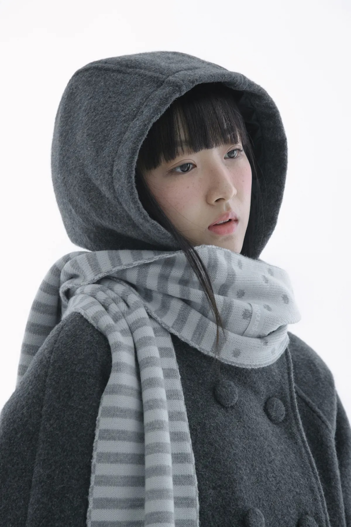 (HUG YOUR SKIN) Angel wing stripe pom-pom muffler - 2col