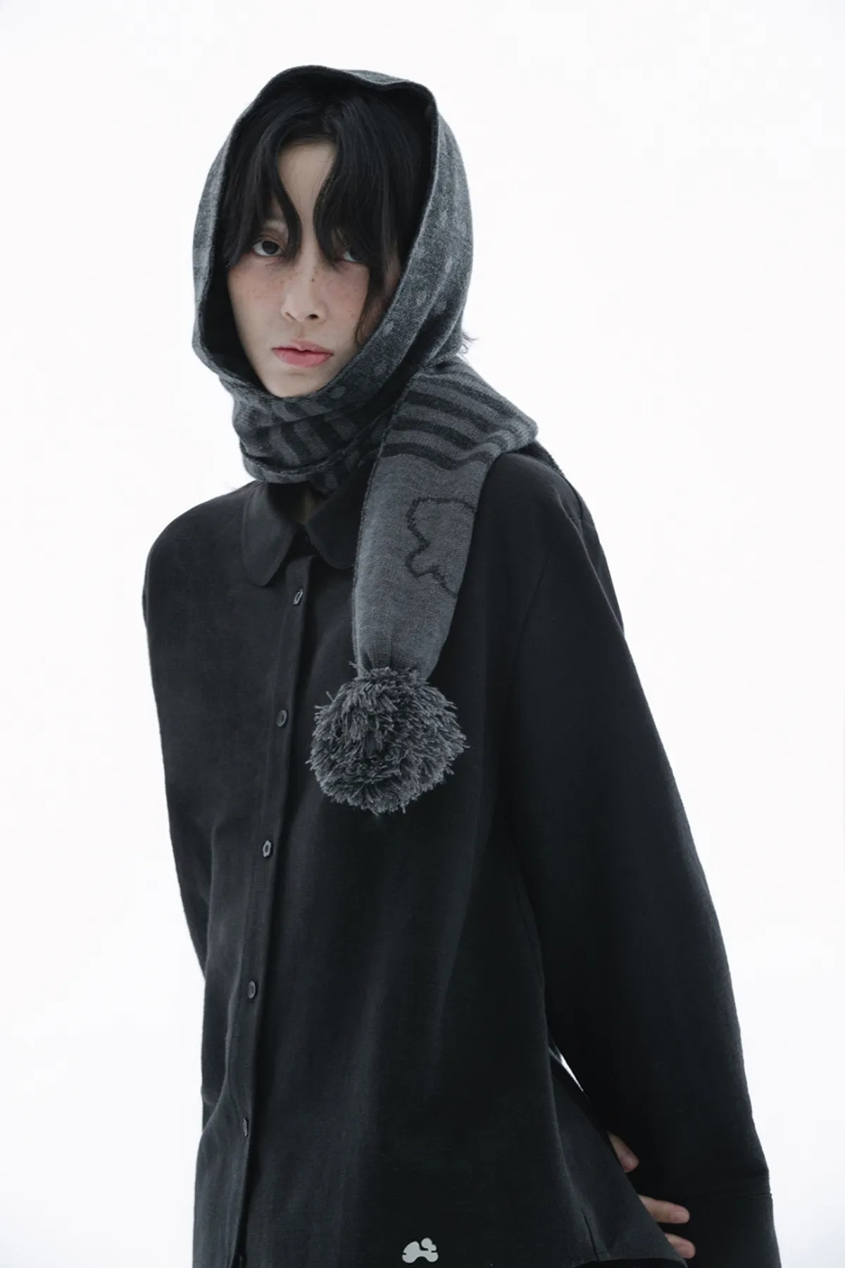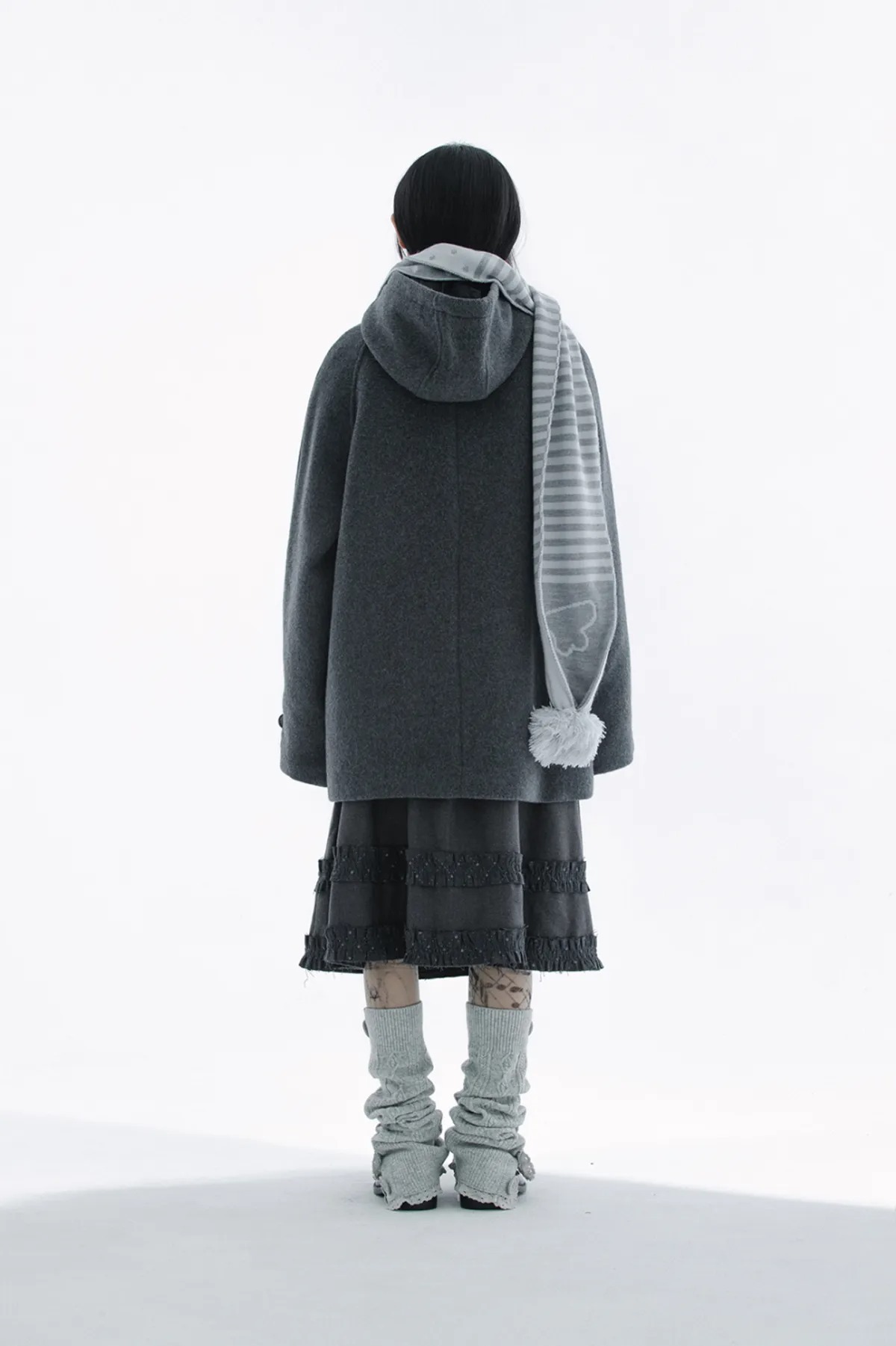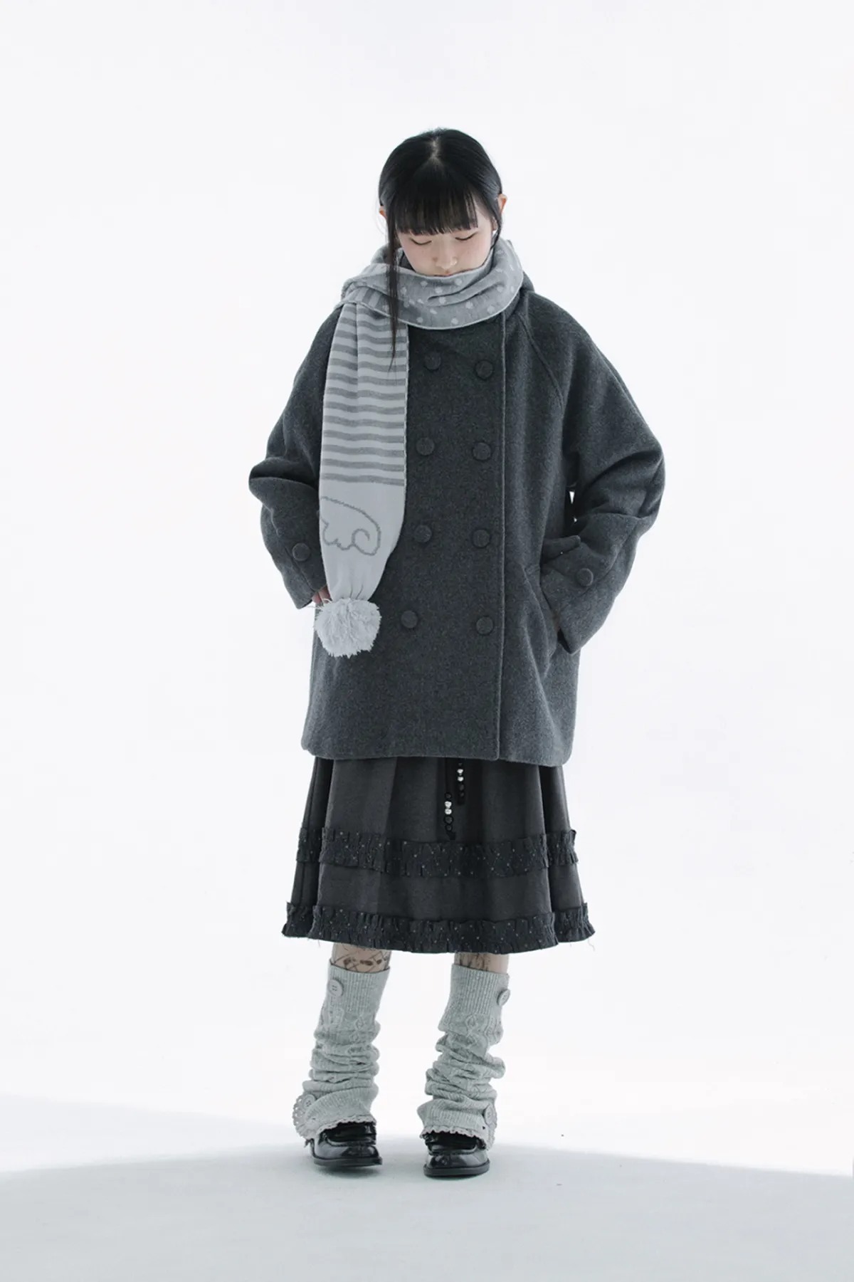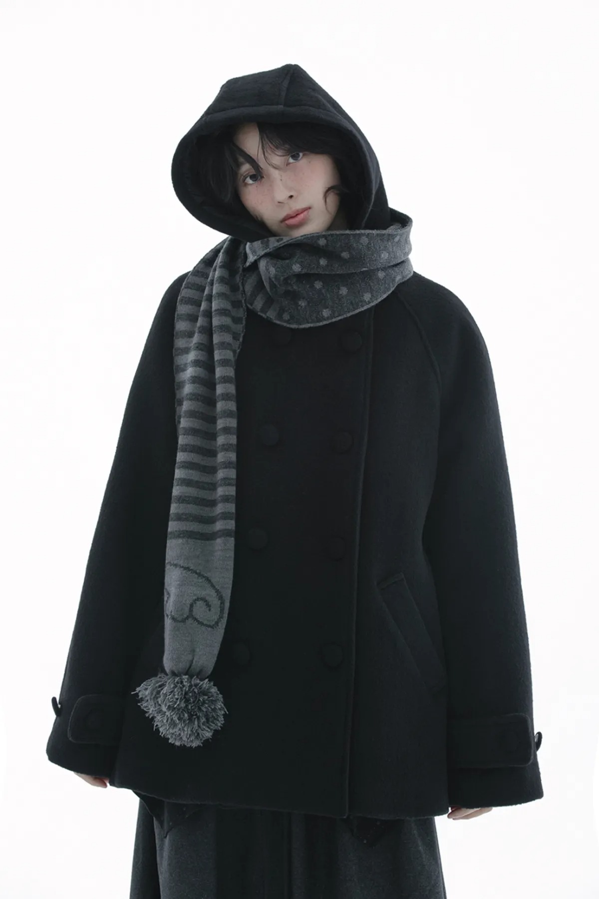 (HUG YOUR SKIN) Angel wing stripe pom-pom muffler - 2col
