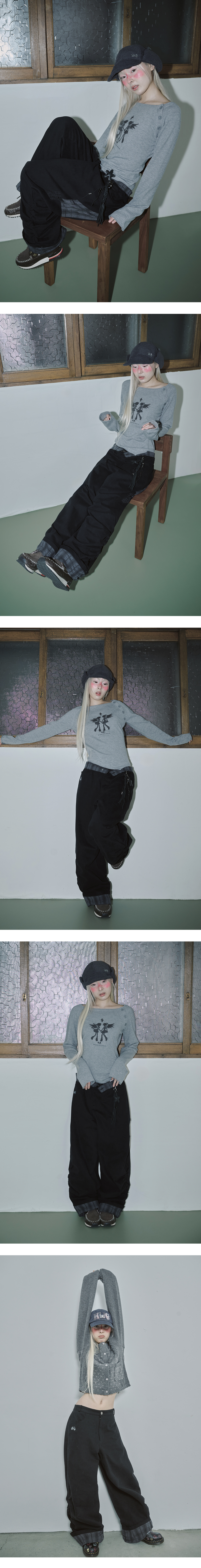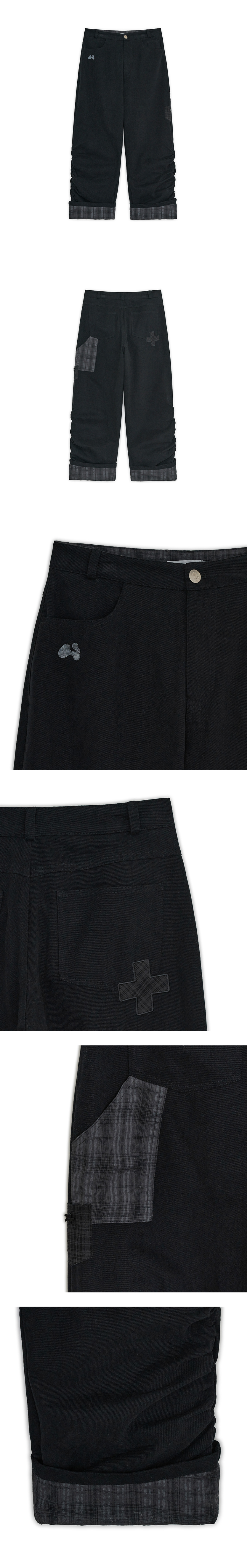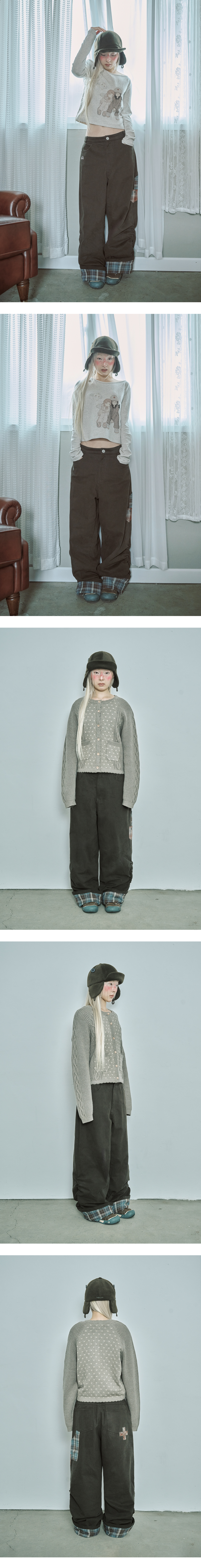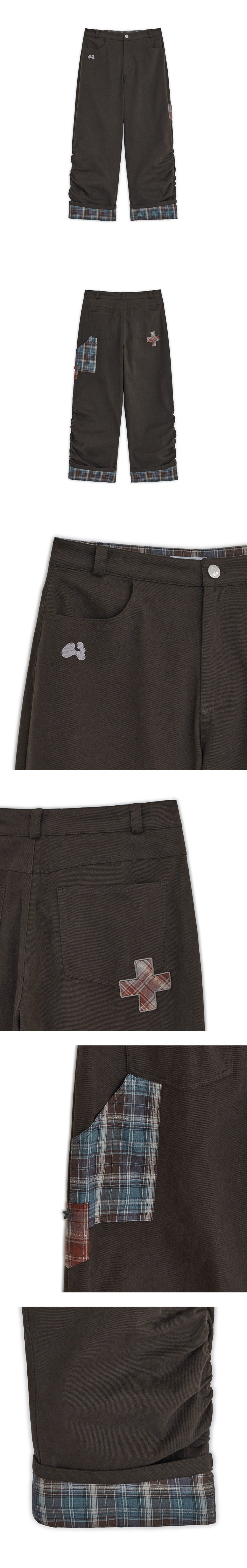 (HUG YOUR SKIN) Check roll-up cotton pants - 2col