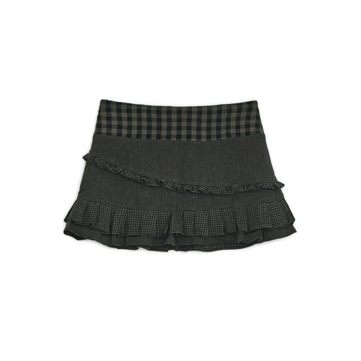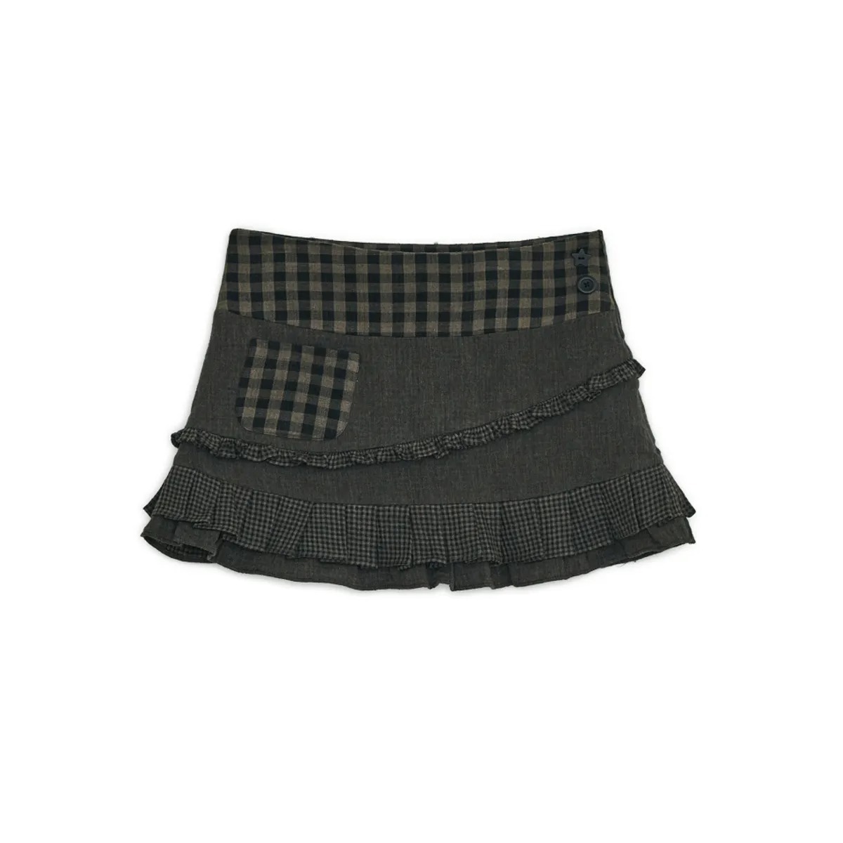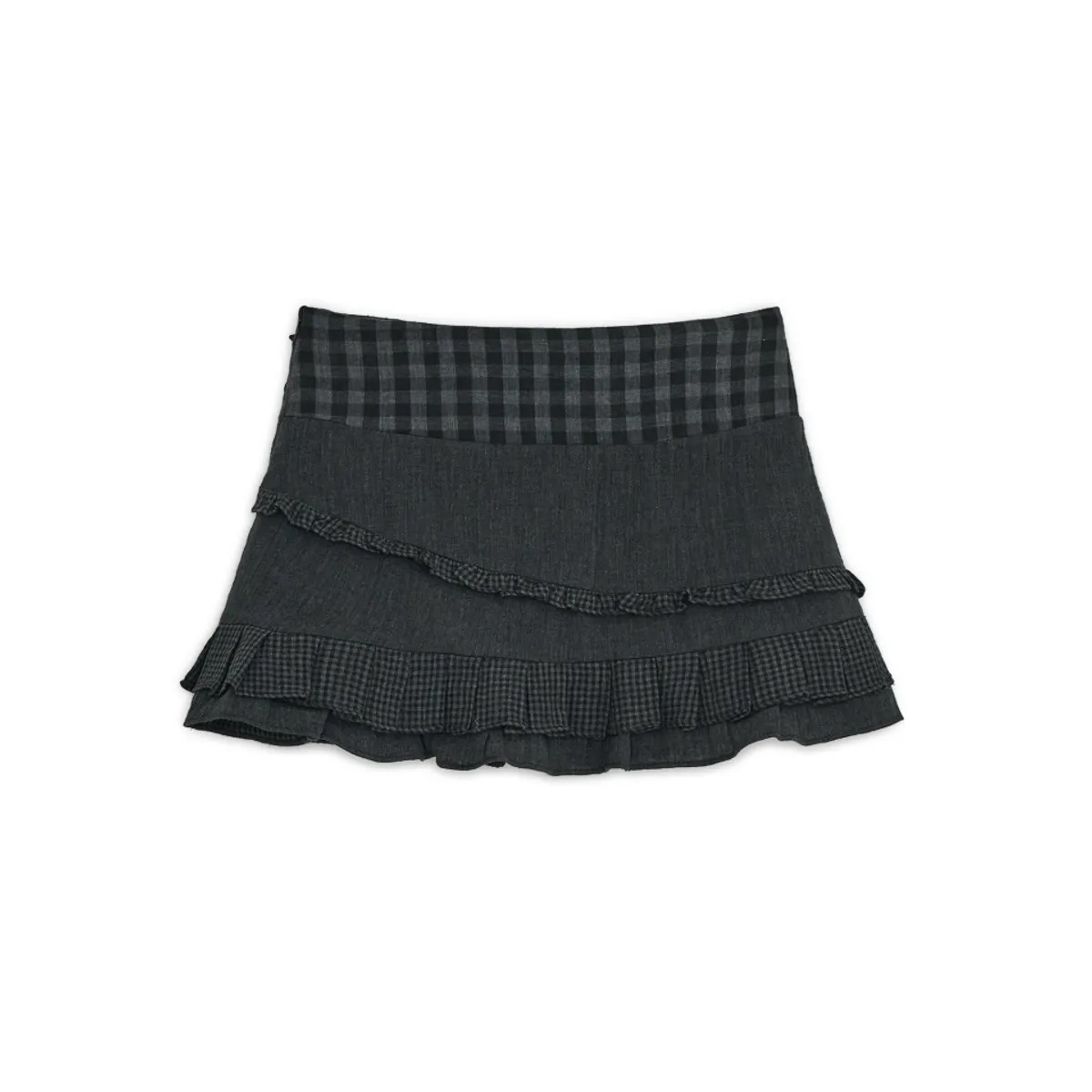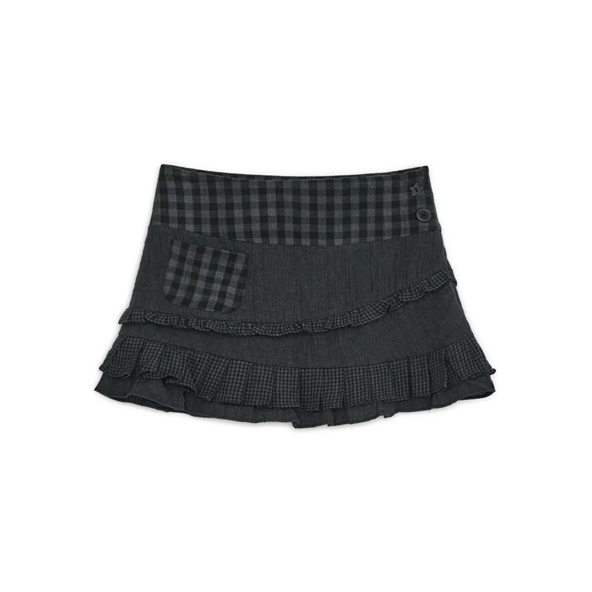(HUG YOUR SKIN) Check ruffle mini skirt - 2col