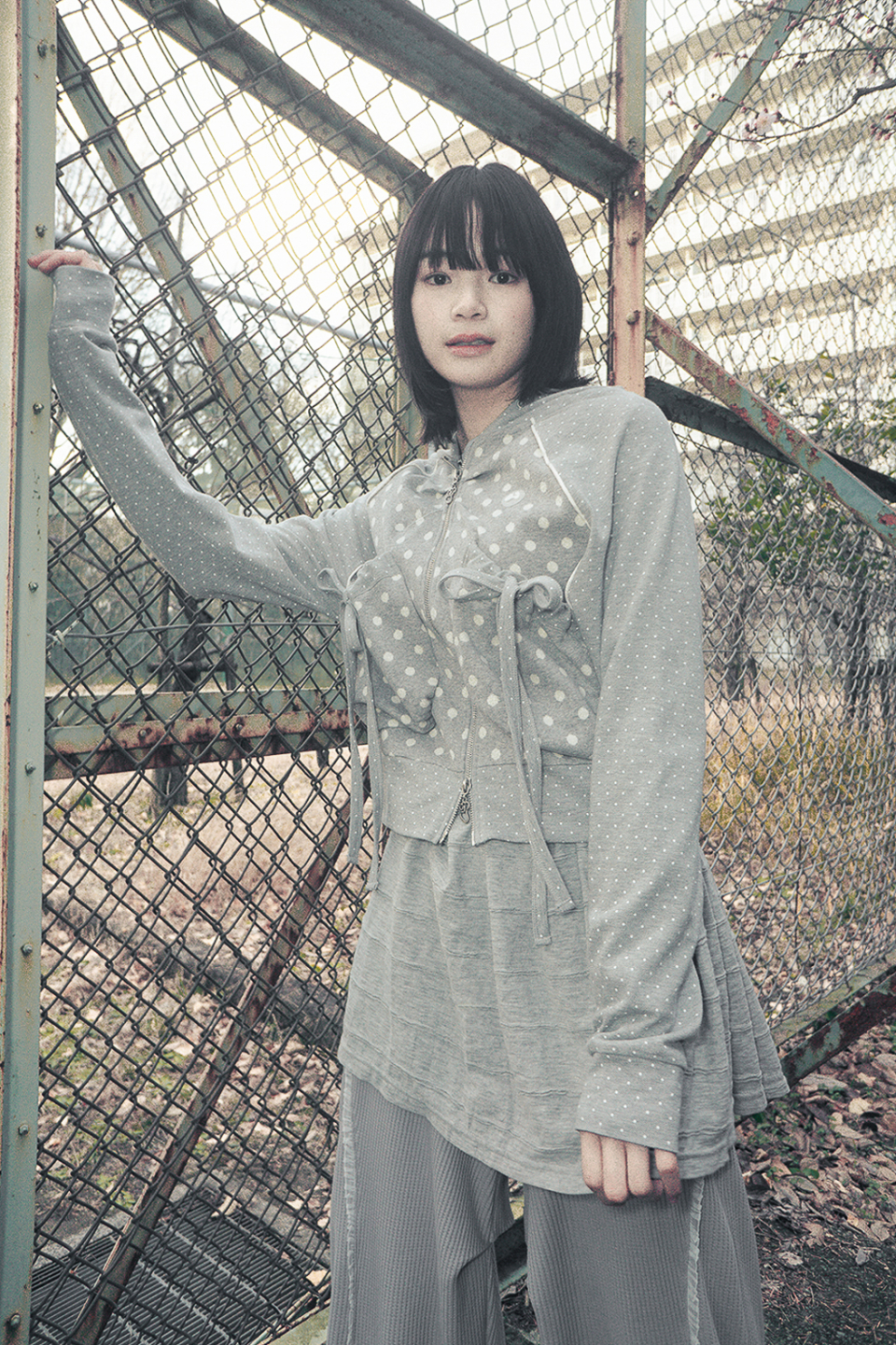 (HUG YOUR SKIN) Dot big pocket hoodie zip-up - 2col