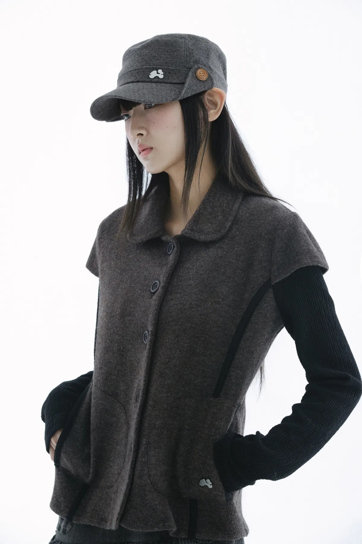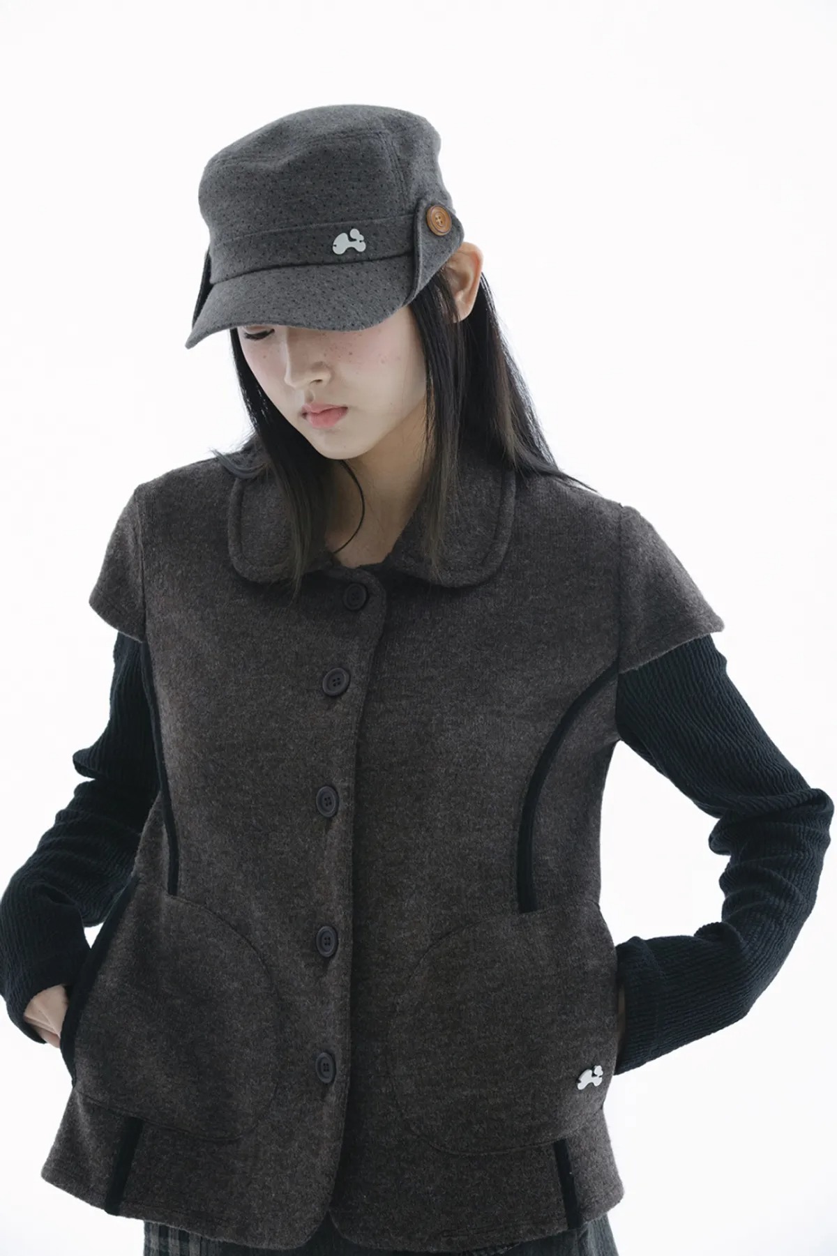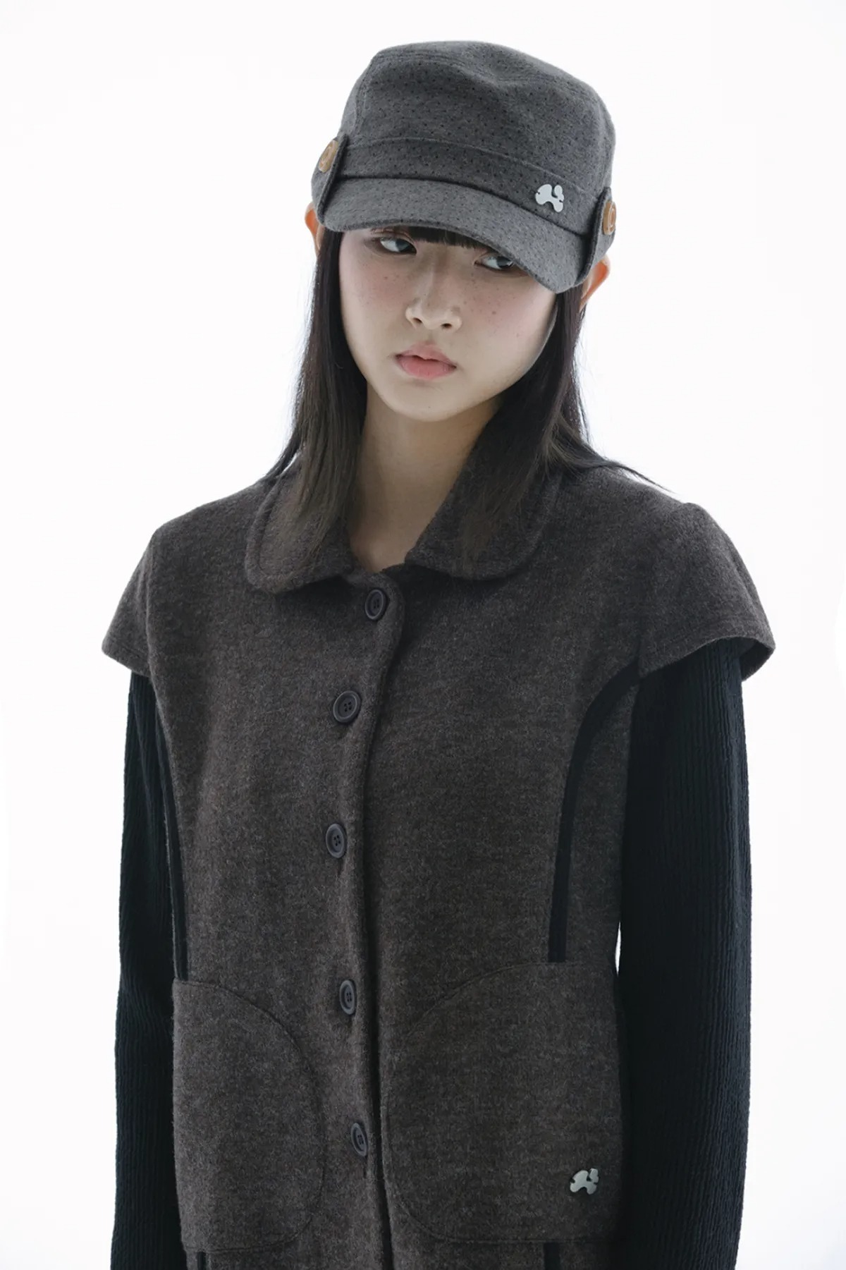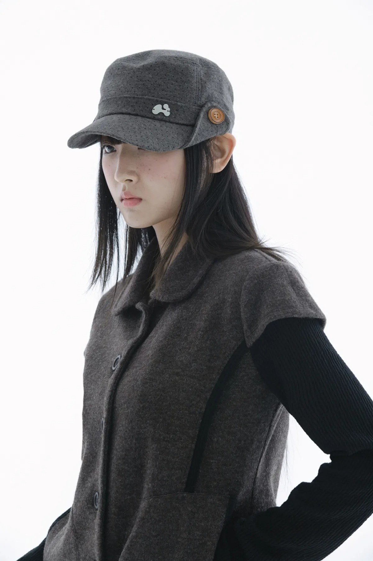 (HUG YOUR SKIN) Dot button flap cap (Brown)