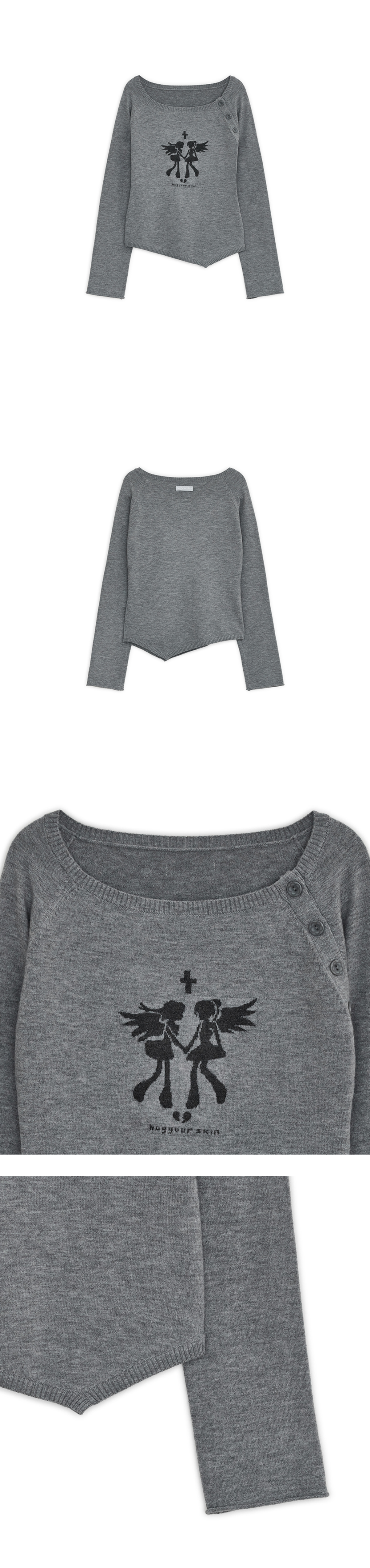 (HUG YOUR SKIN) Fallen angel button knit top - 3col