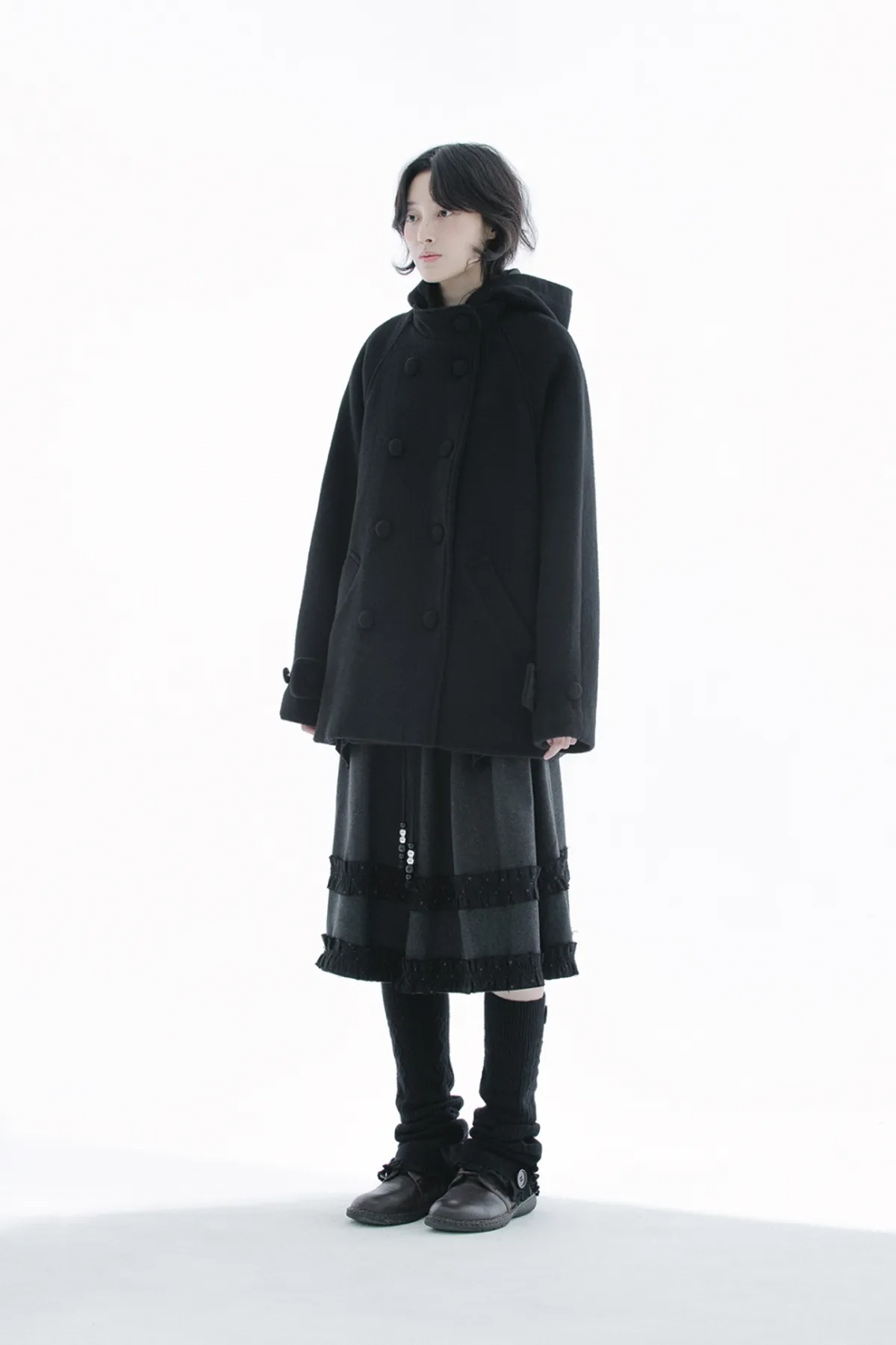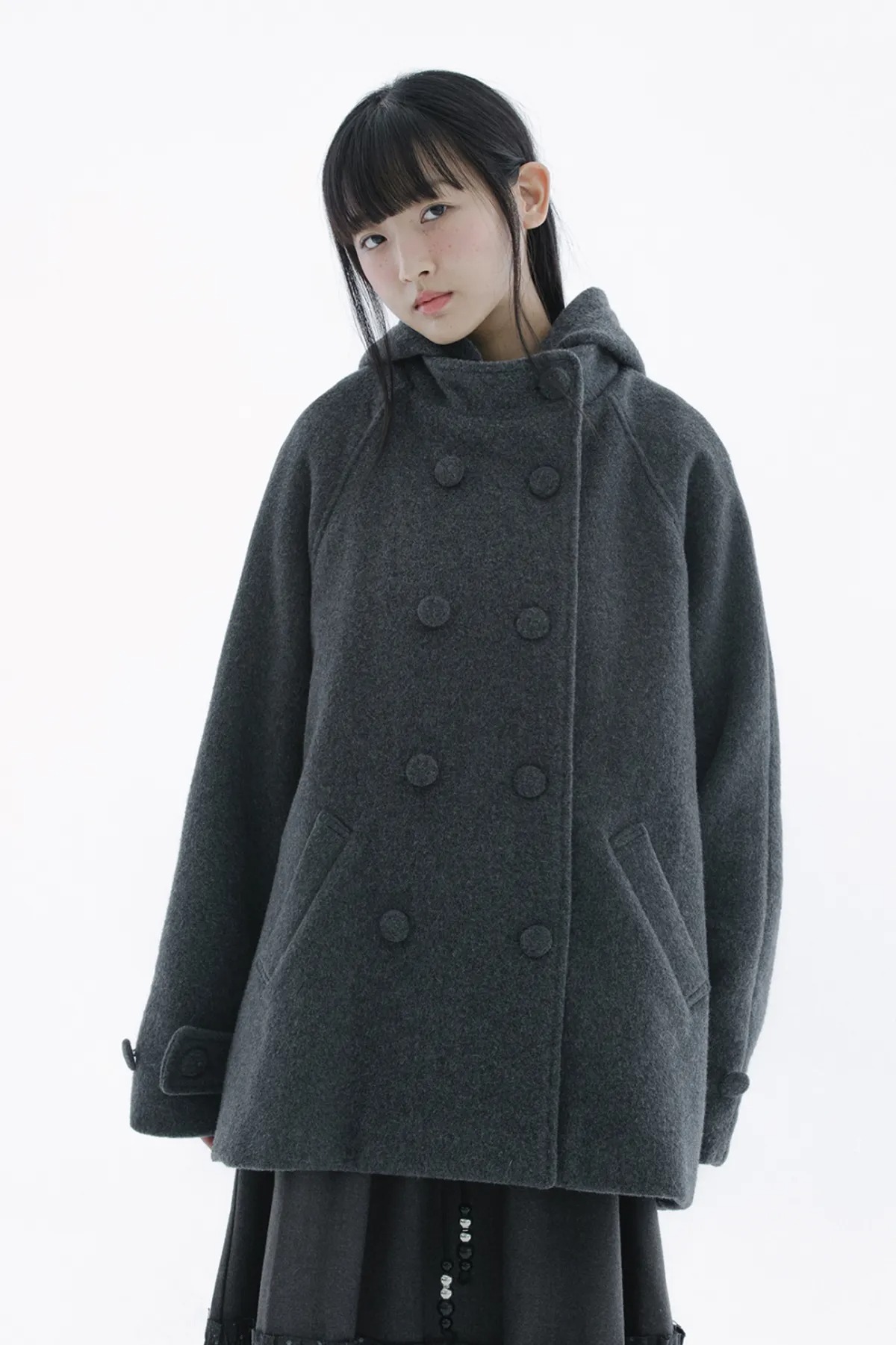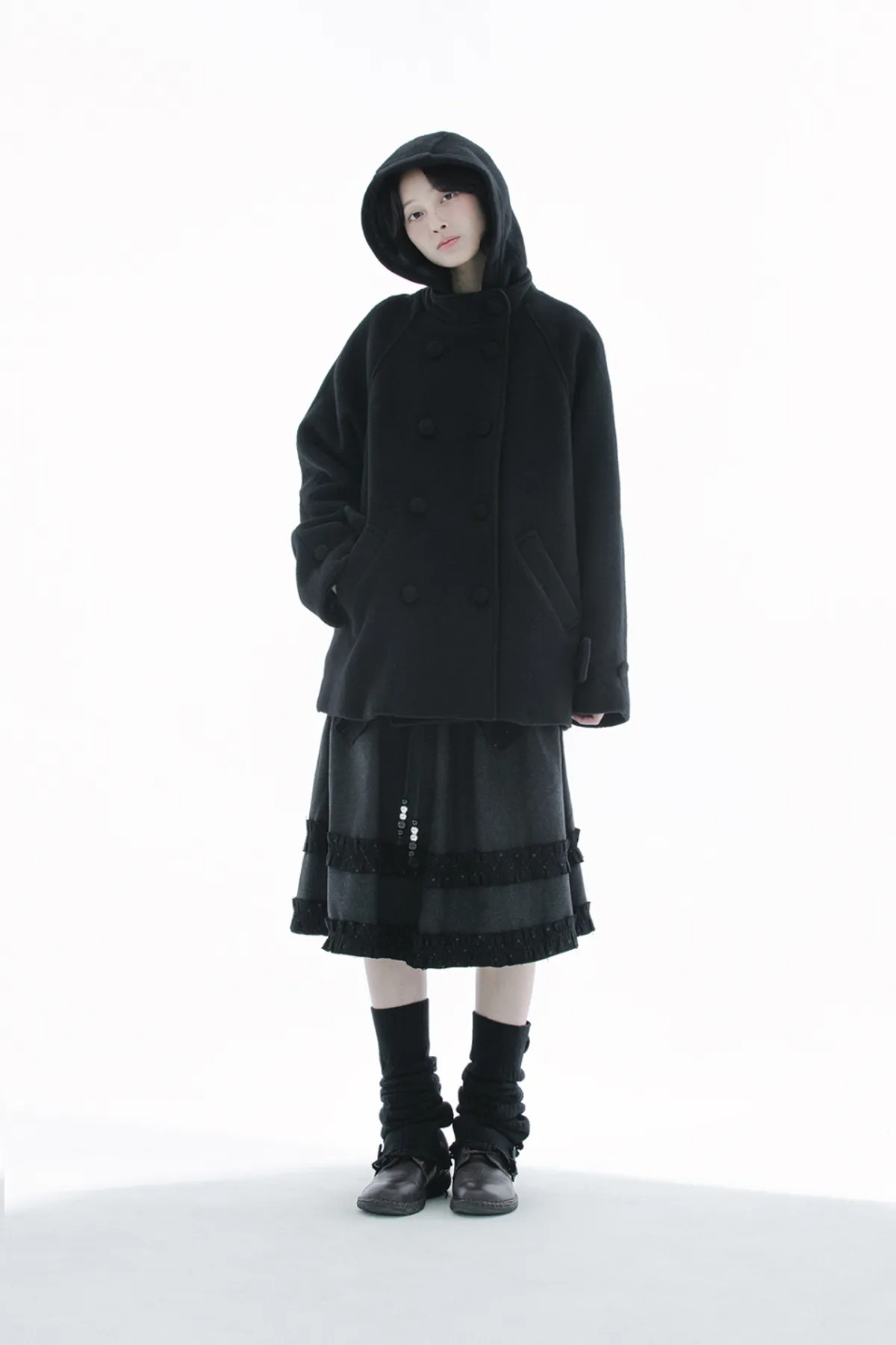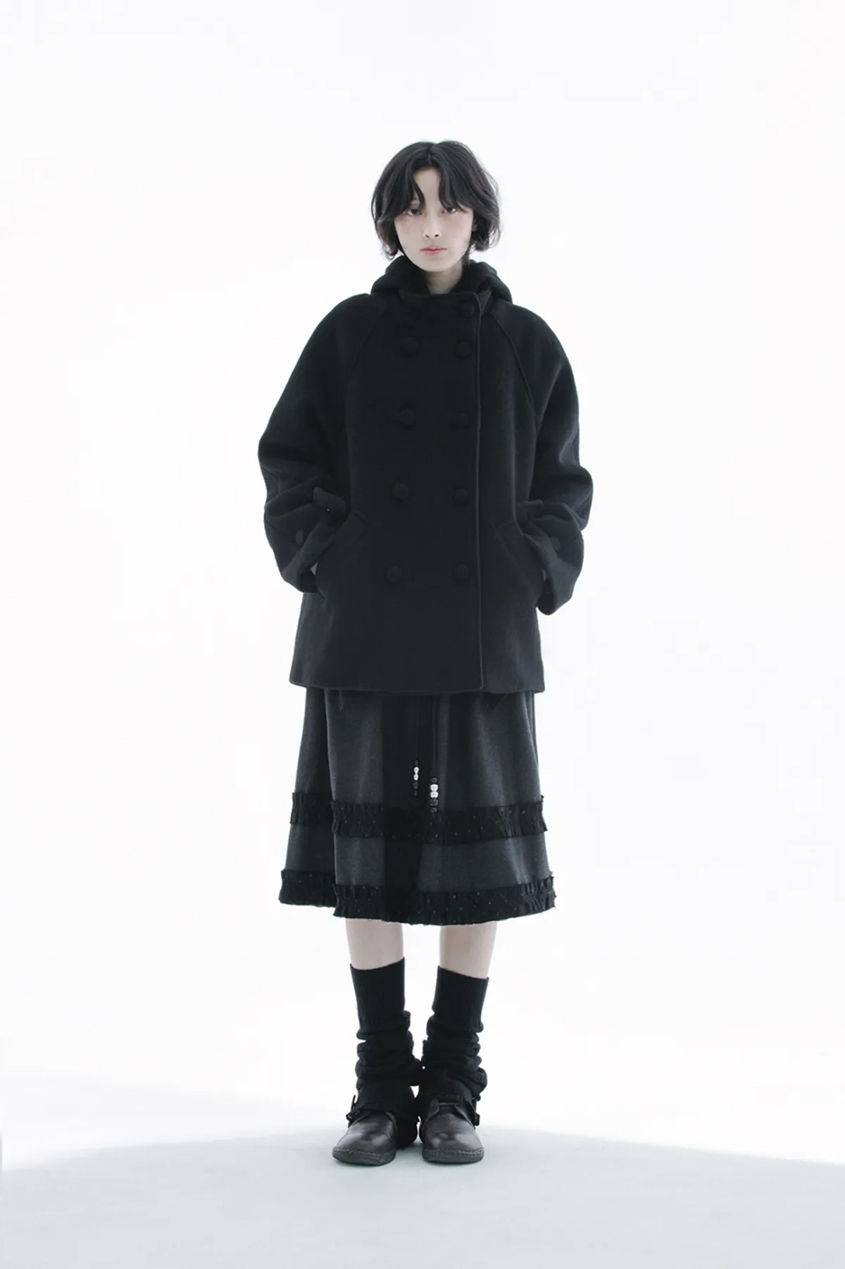 (HUG YOUR SKIN) Hooded half coat - 2col