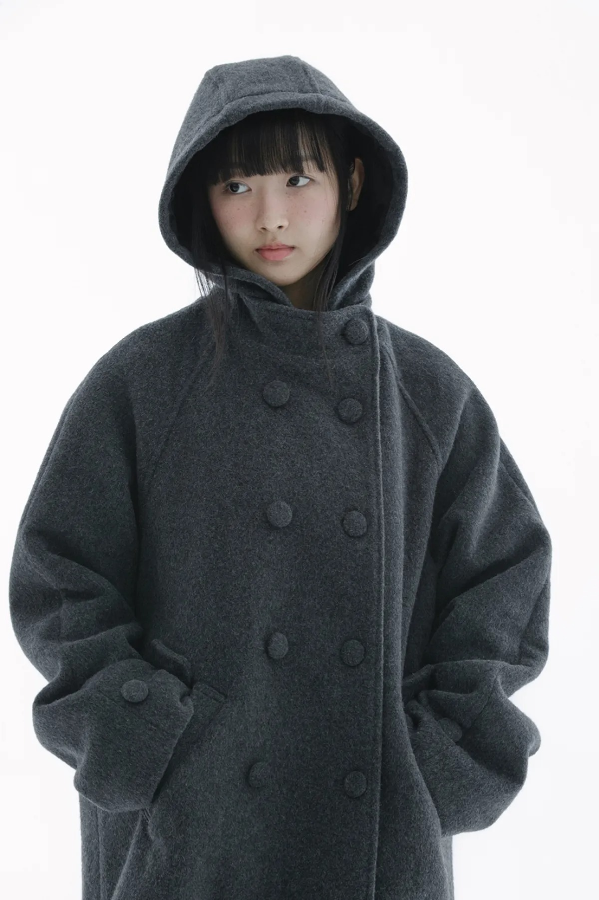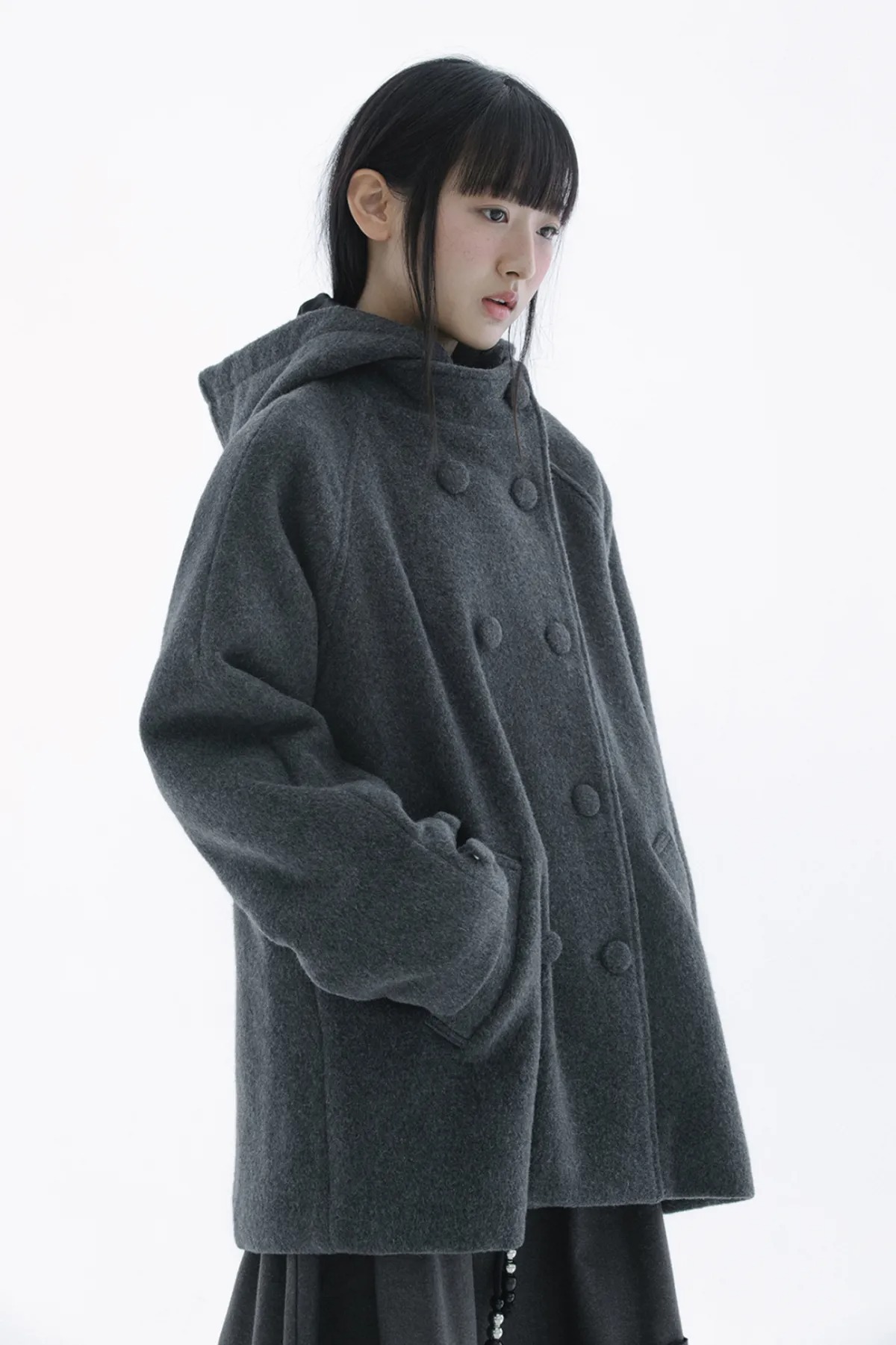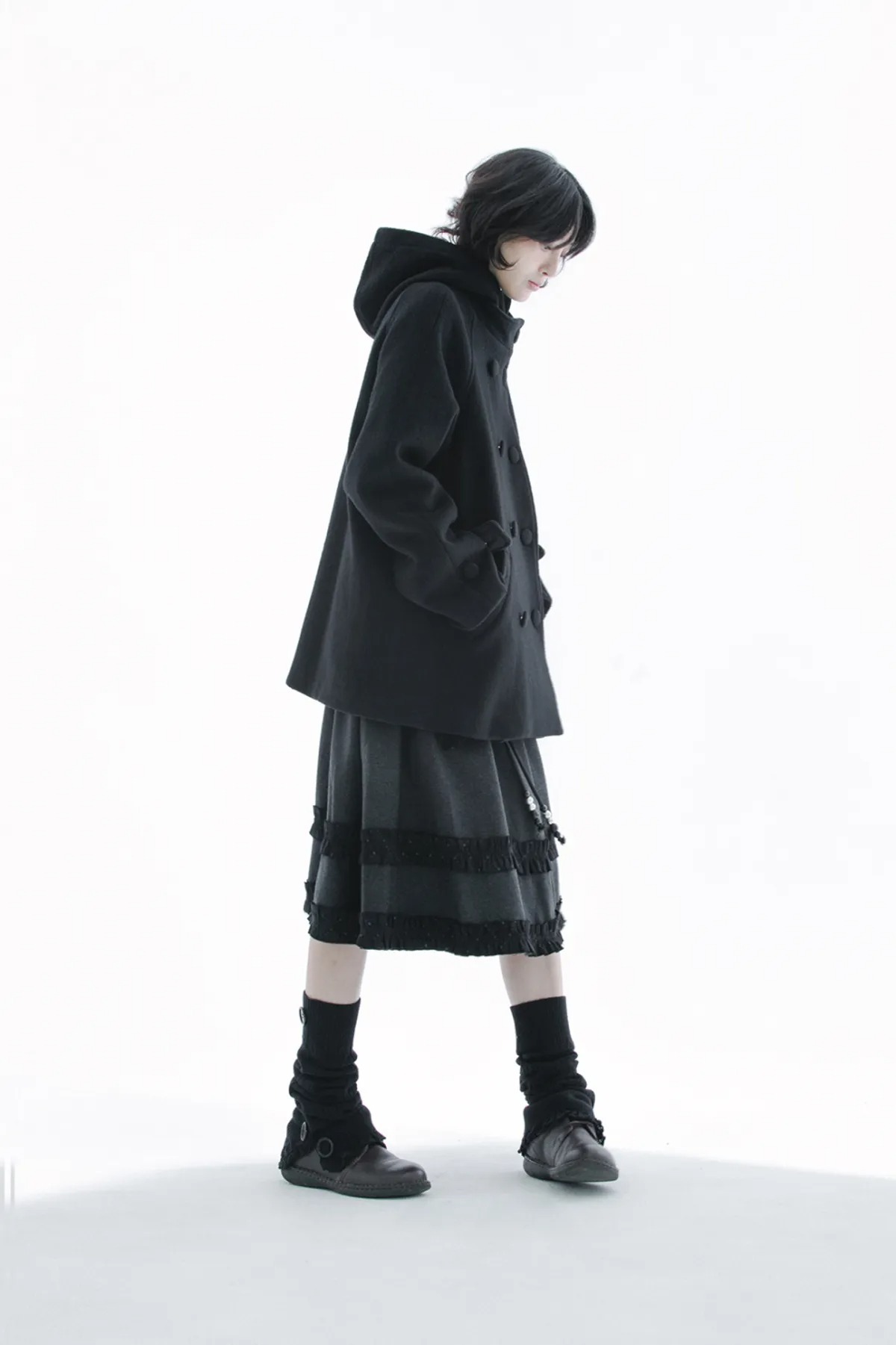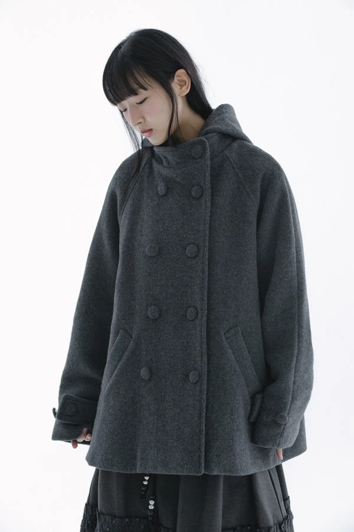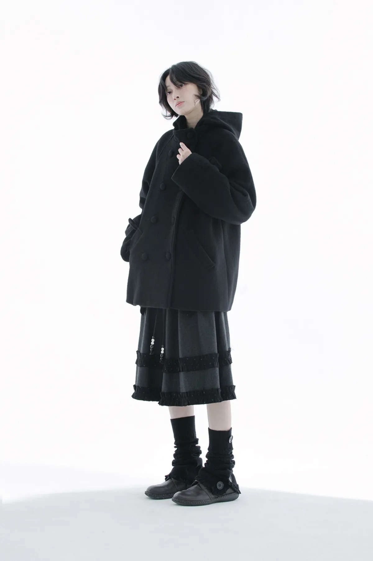 (HUG YOUR SKIN) Hooded half coat - 2col