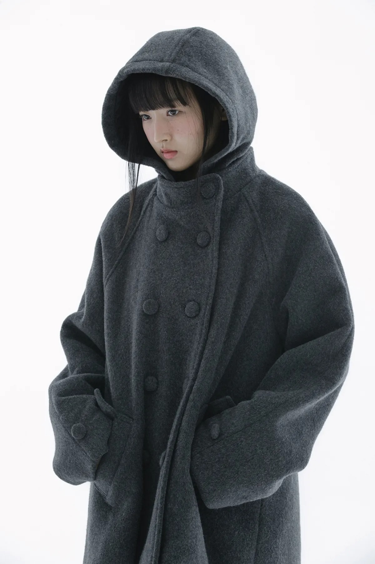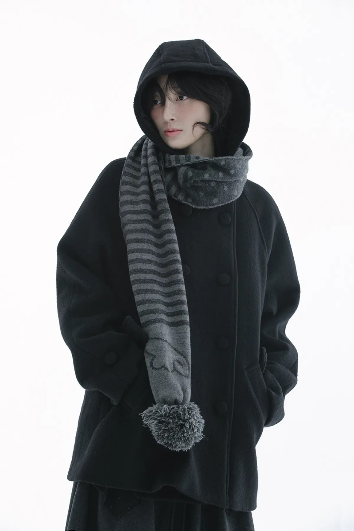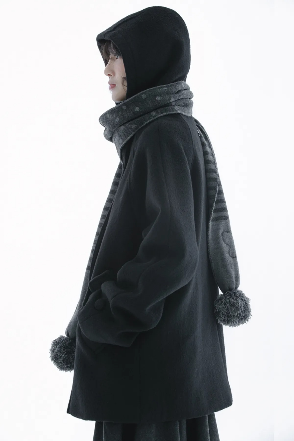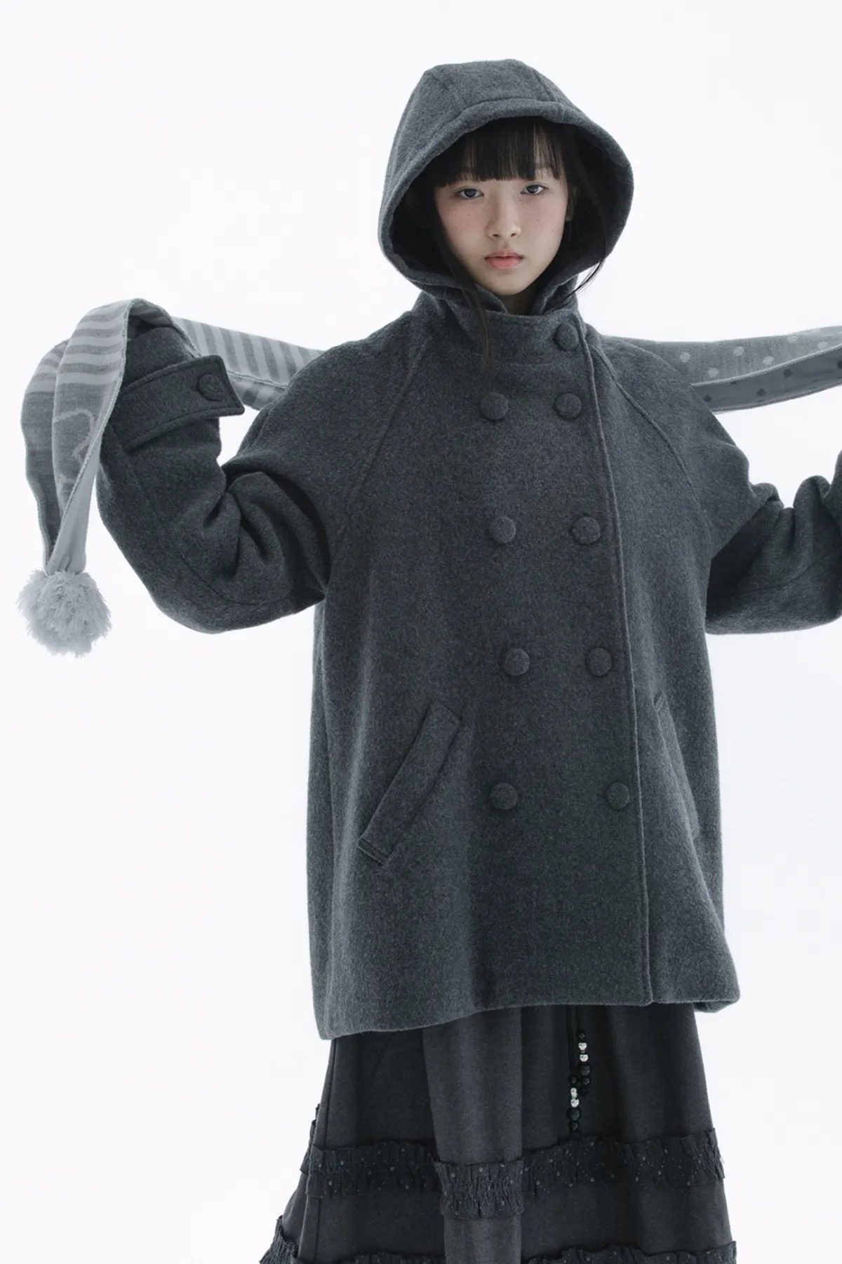(HUG YOUR SKIN) Hooded half coat - 2col