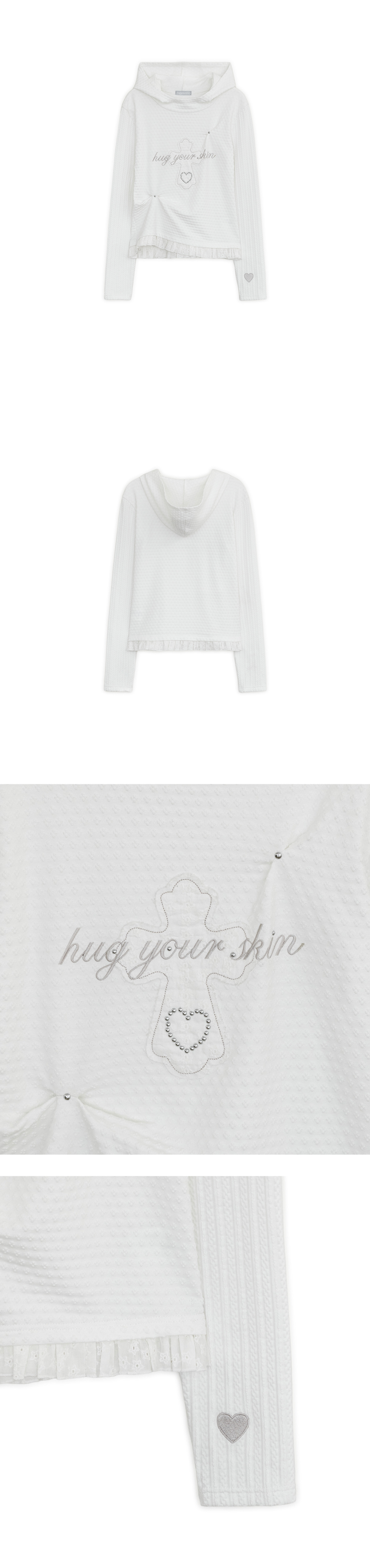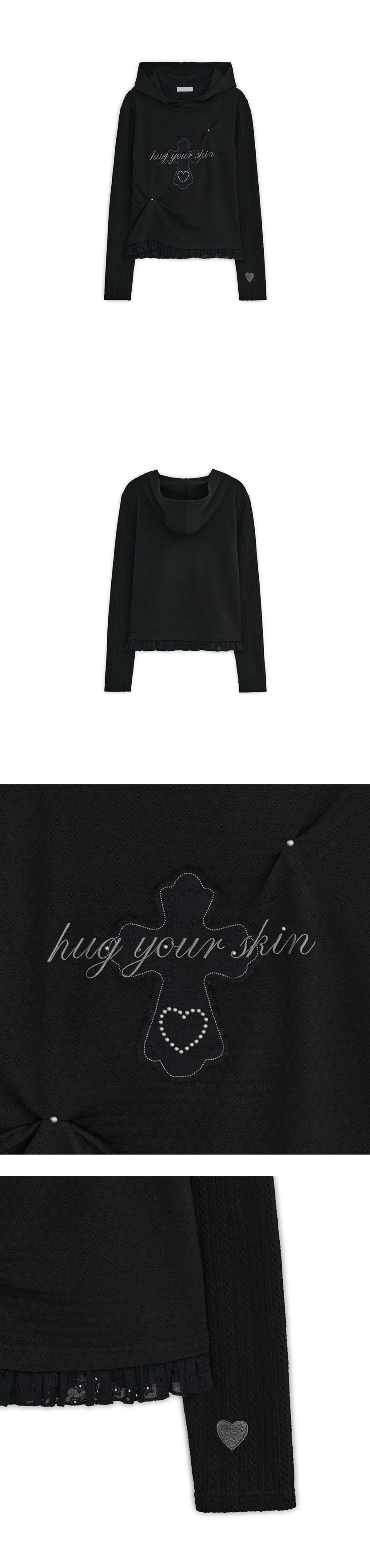 (HUG YOUR SKIN) Lace cross patch hoodie - 2col