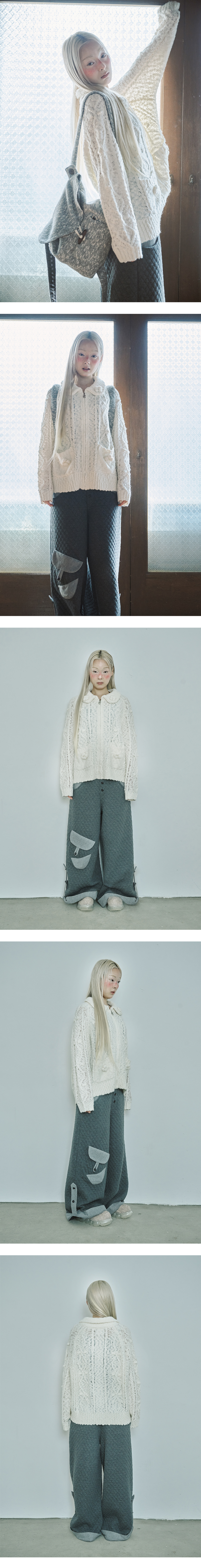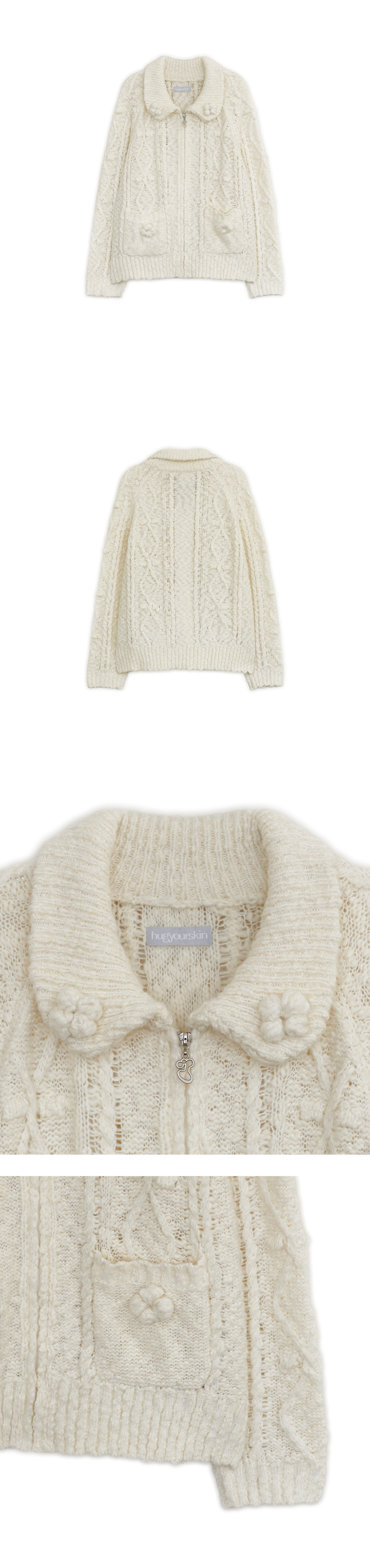 (HUG YOUR SKIN) Popcorn knit zip-up - 2col