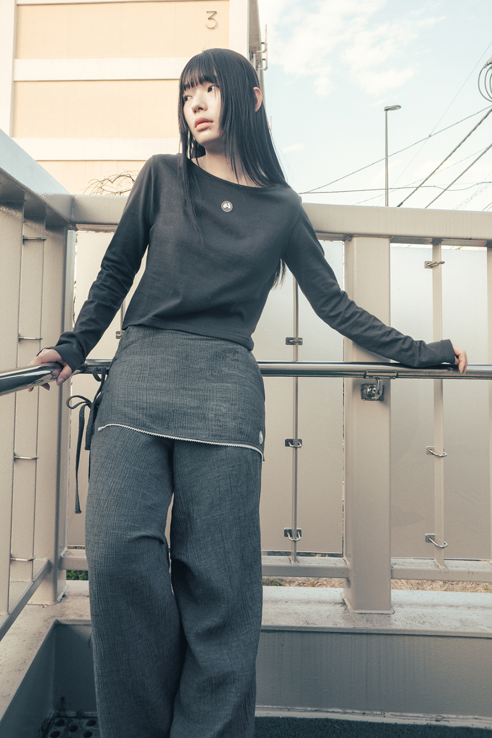 (HUG YOUR SKIN) Skirt layered pants - 3col