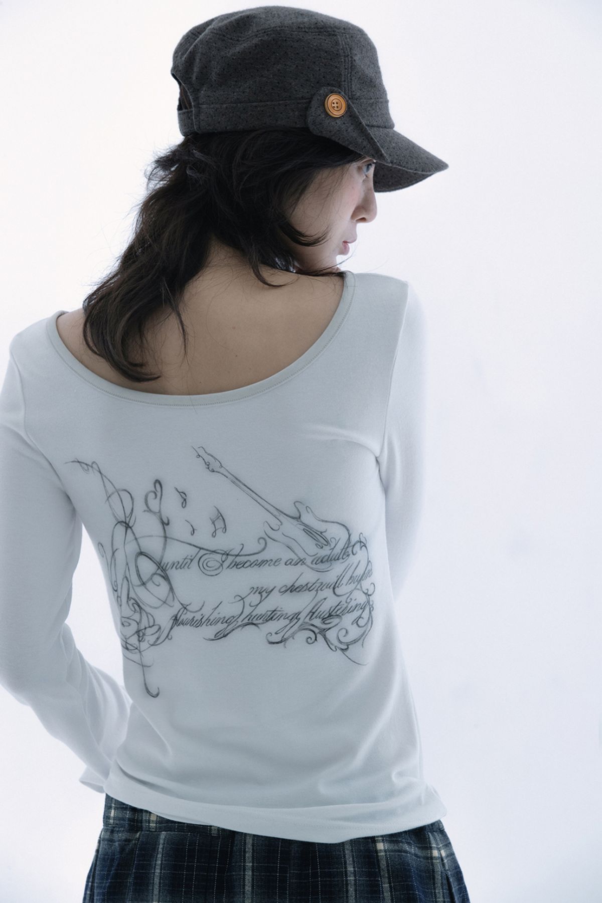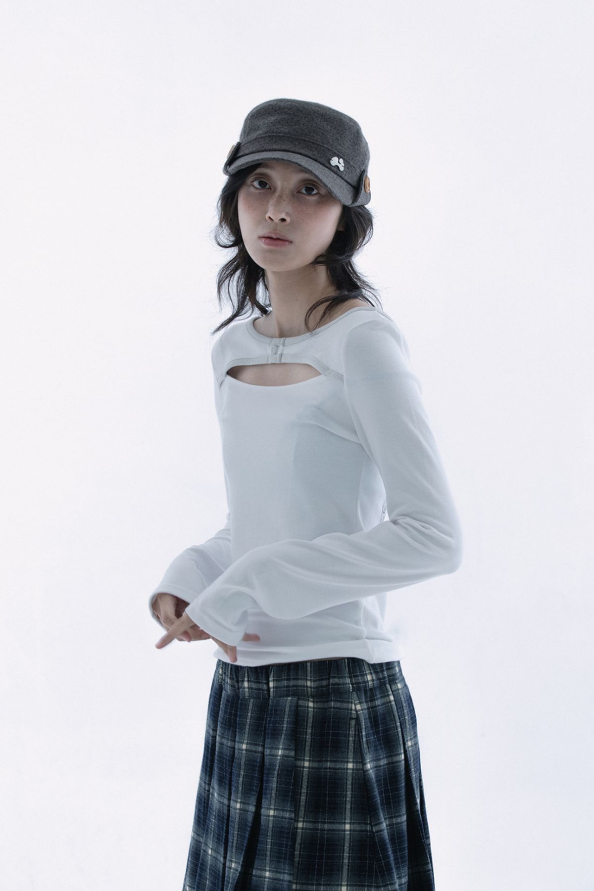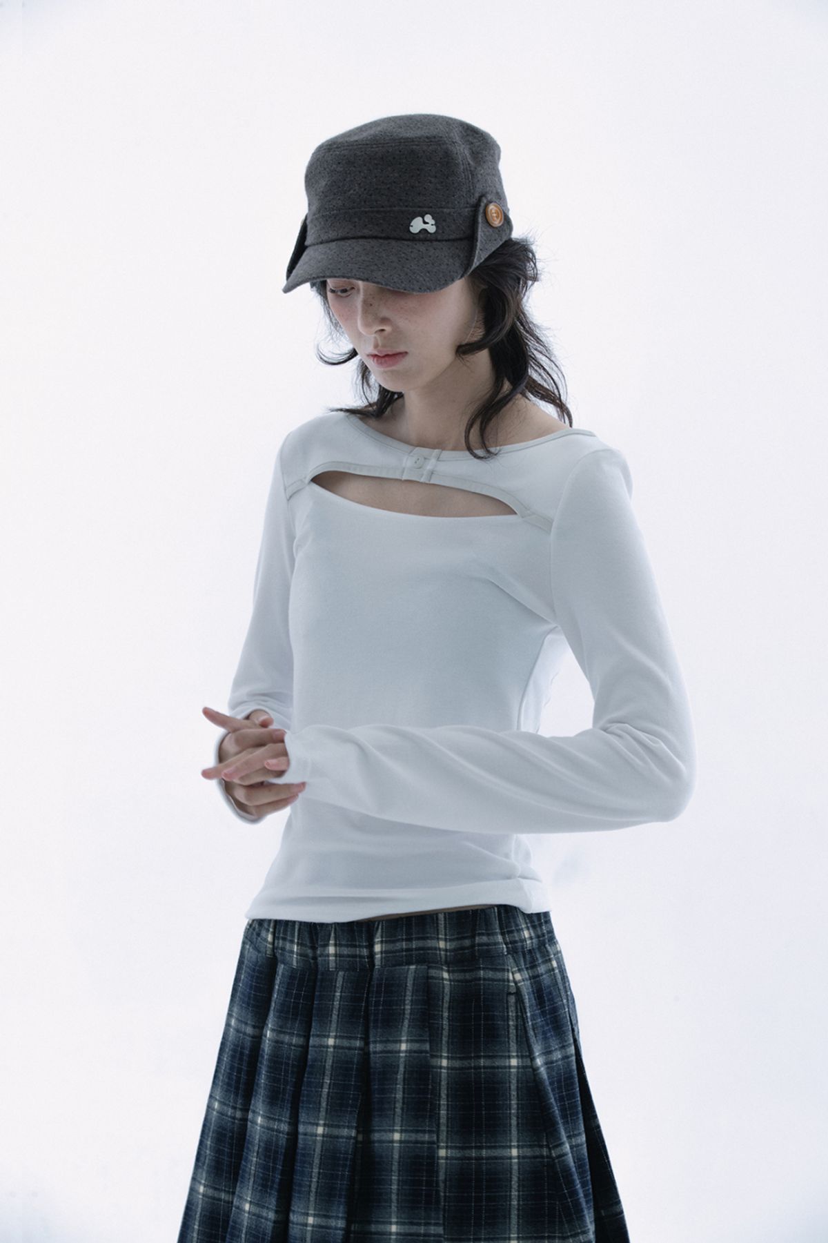 (HUG YOUR SKIN) Slit button printed top (White)