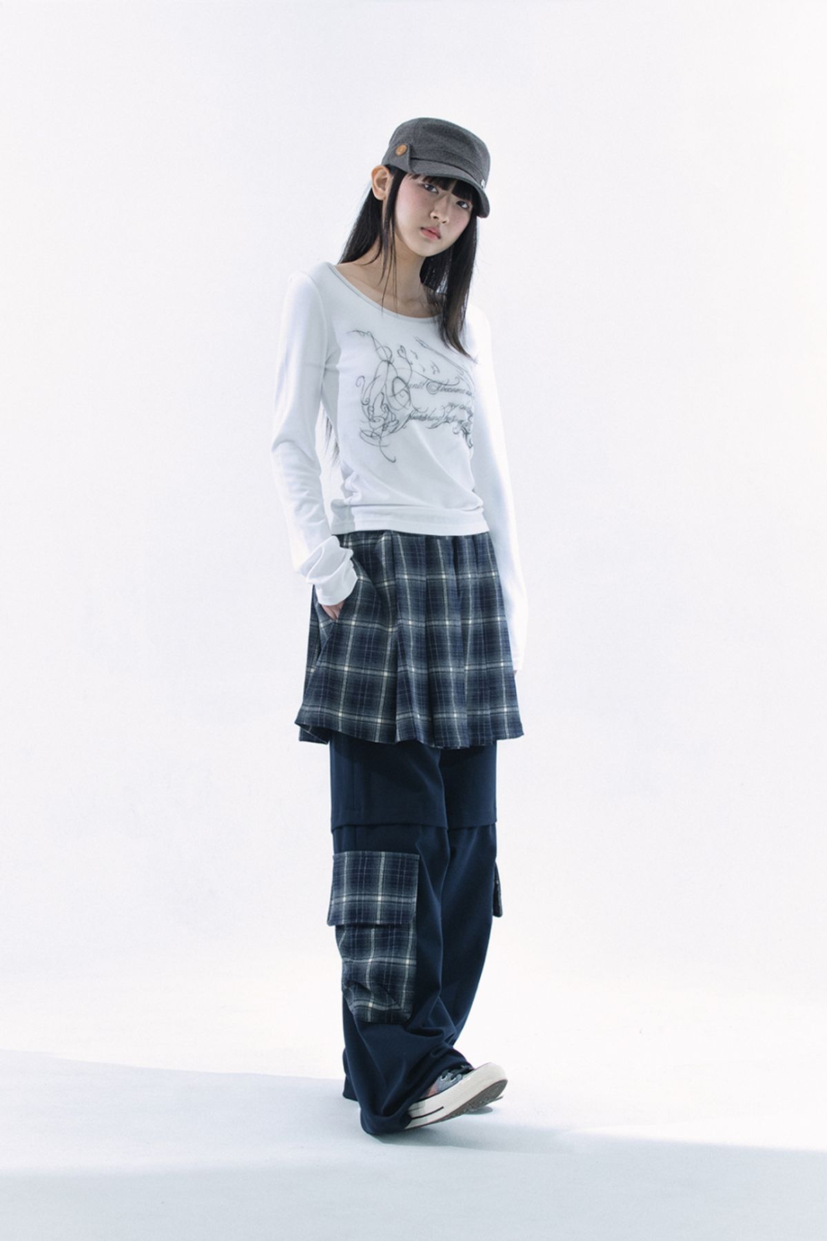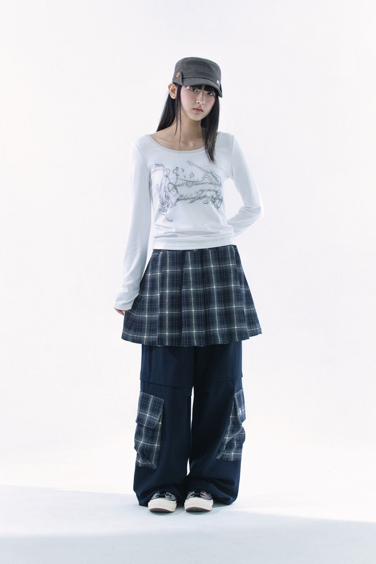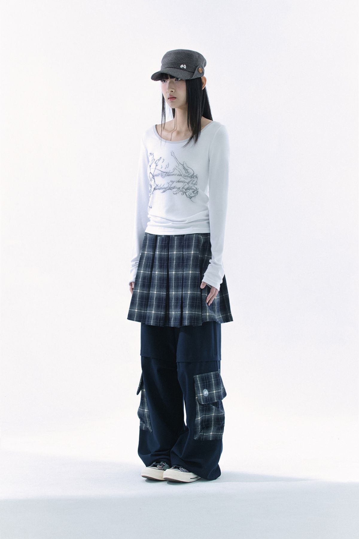 (HUG YOUR SKIN) Slit button printed top (White)