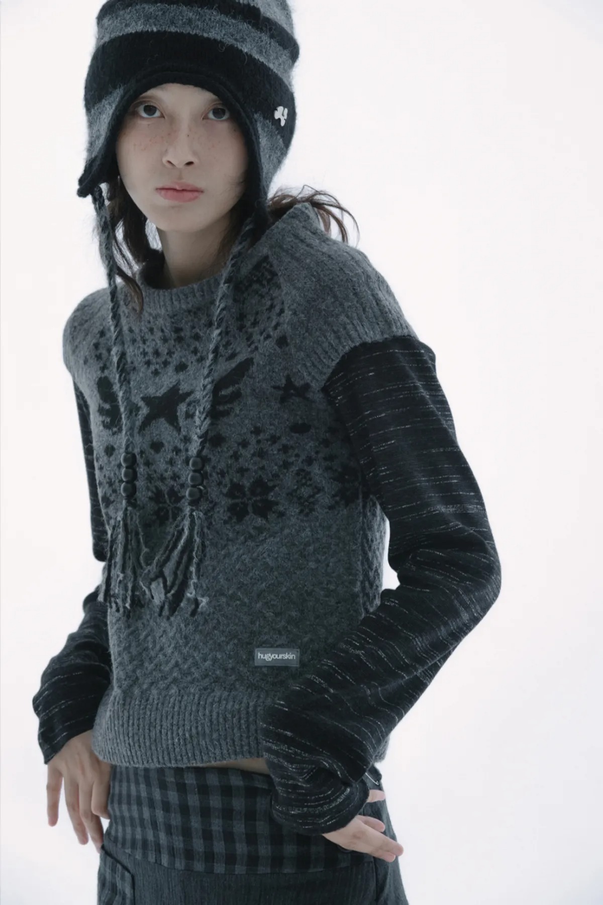 (HUG YOUR SKIN) Star-wing knit top - 3col