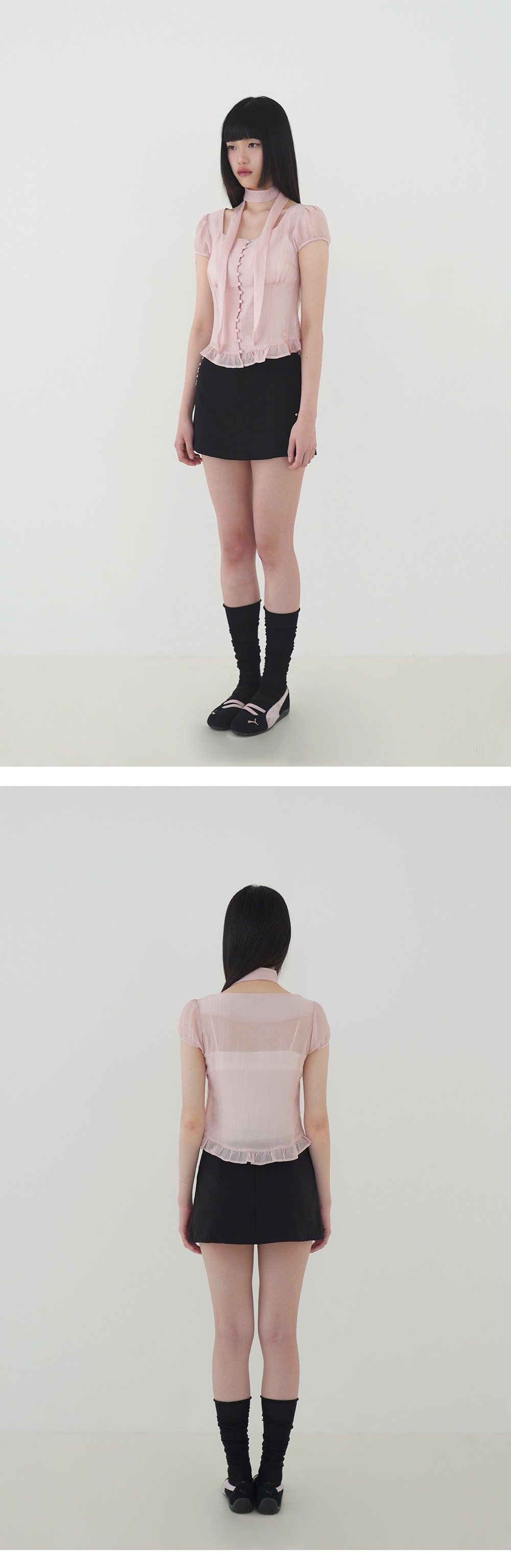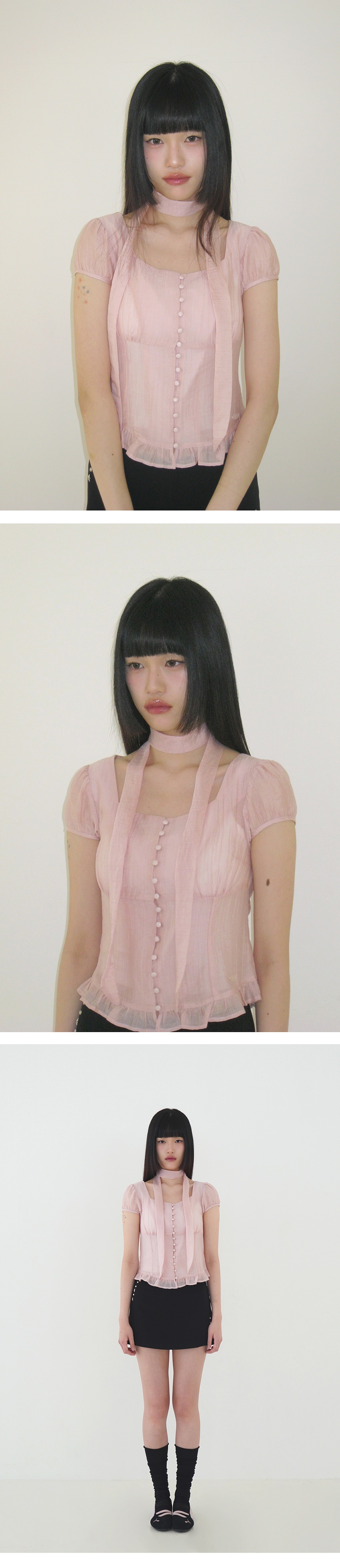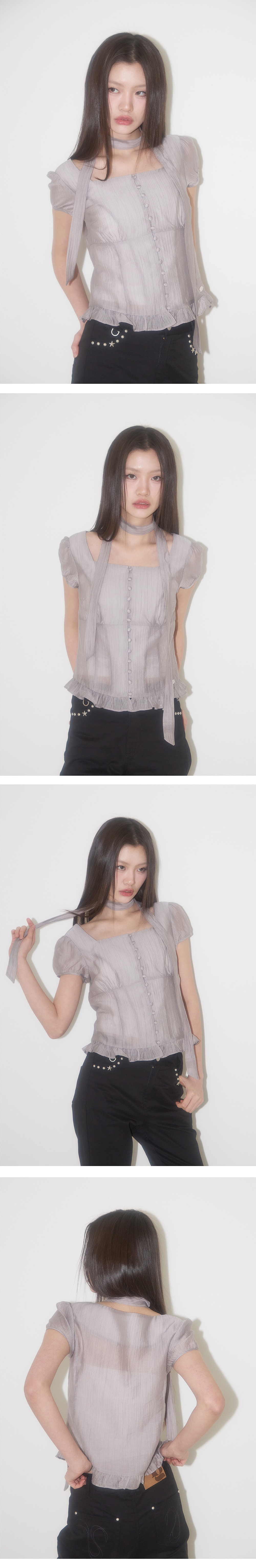 (ILLIGO) Ribbon Tie Square Neck Blouse - 7col