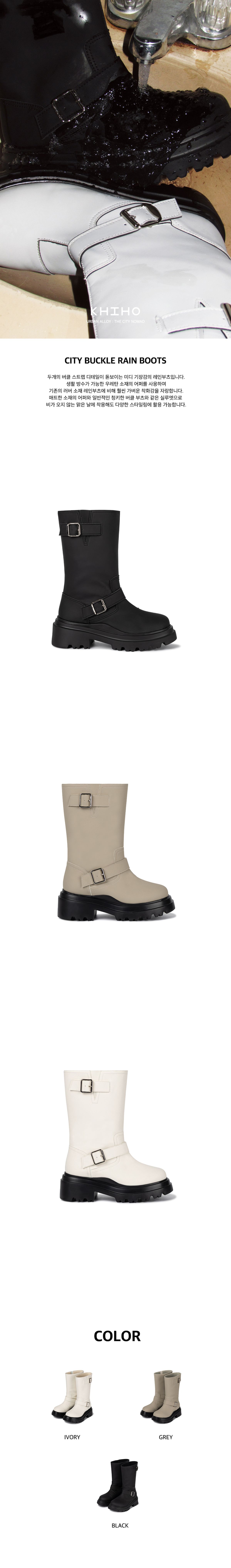 (KHIHO) CITY BUCKLE RAIN BOOTS - 3col