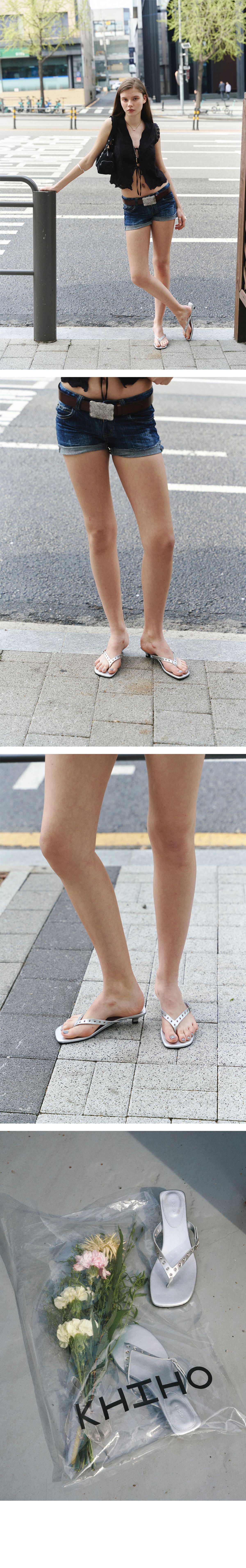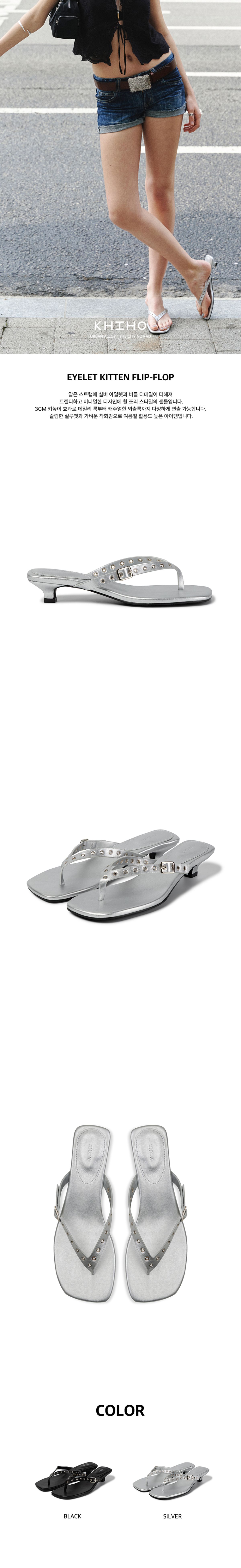 (KHIHO) EYELET KITTEN FLIP-FLOP - 2col
