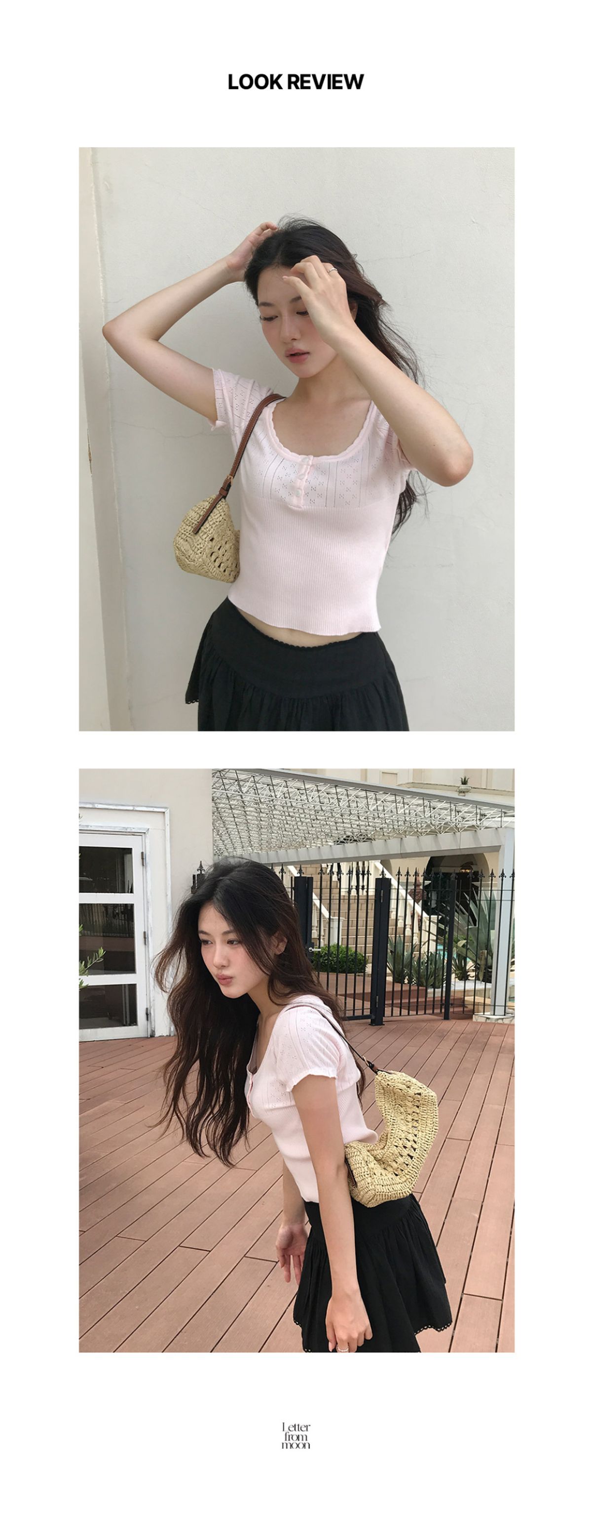 (LETTER FROM MOON) Daming Heartneck Button Knit Top ( Pink )