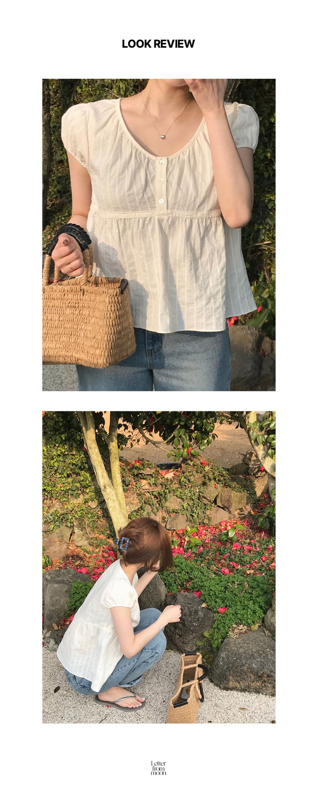 (LETTER FROM MOON) Pure Lace Shirring Blouse ( Cream )