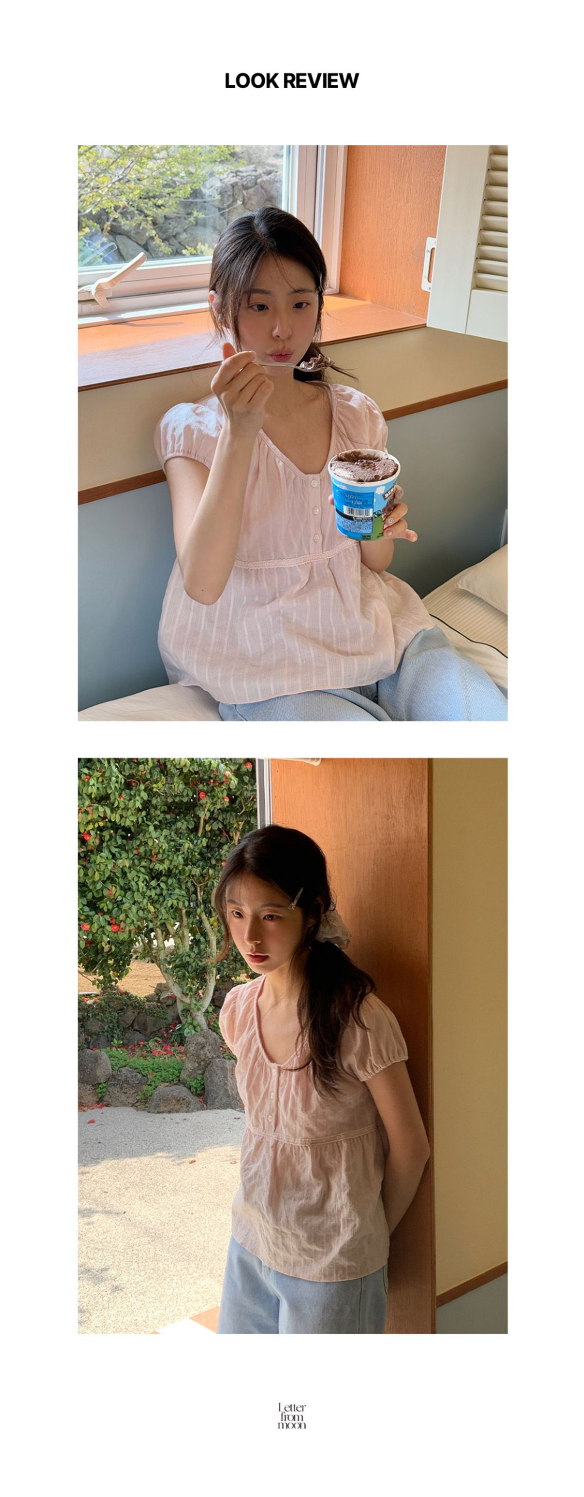 (LETTER FROM MOON) Pure Lace Shirring Blouse ( Pink )