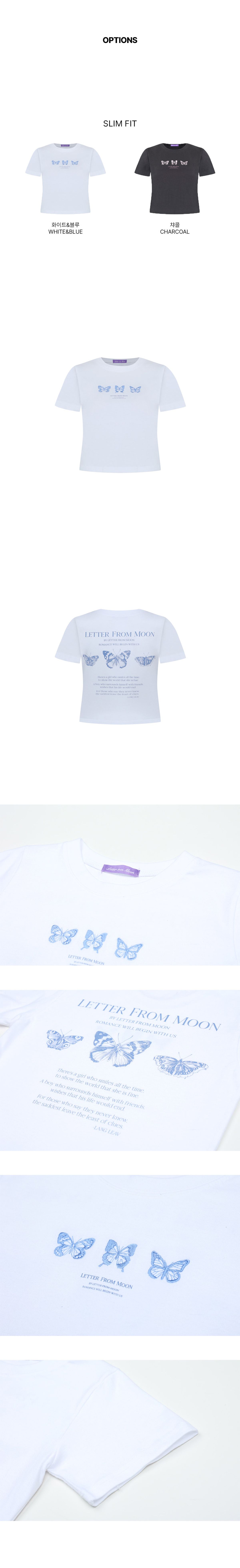 (LETTER FROM MOON) Triple Butterfly Crop Short Sleeve T-shirts - white blue