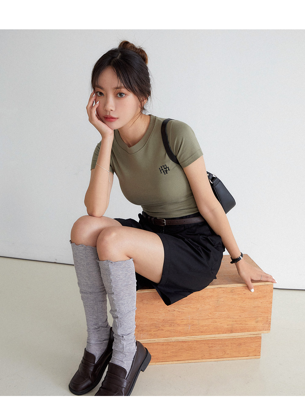 (MUAHMUAH) STITCH LOGO BASIC T-SHIRT | 5color