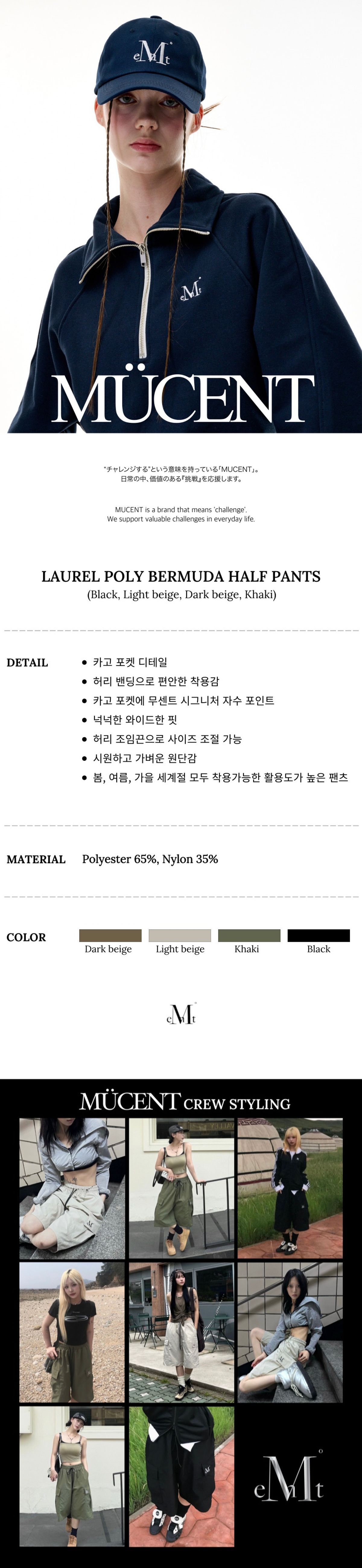 (MUCENT) LAUREL POLY BERMUDA HALF PANTS - 4col