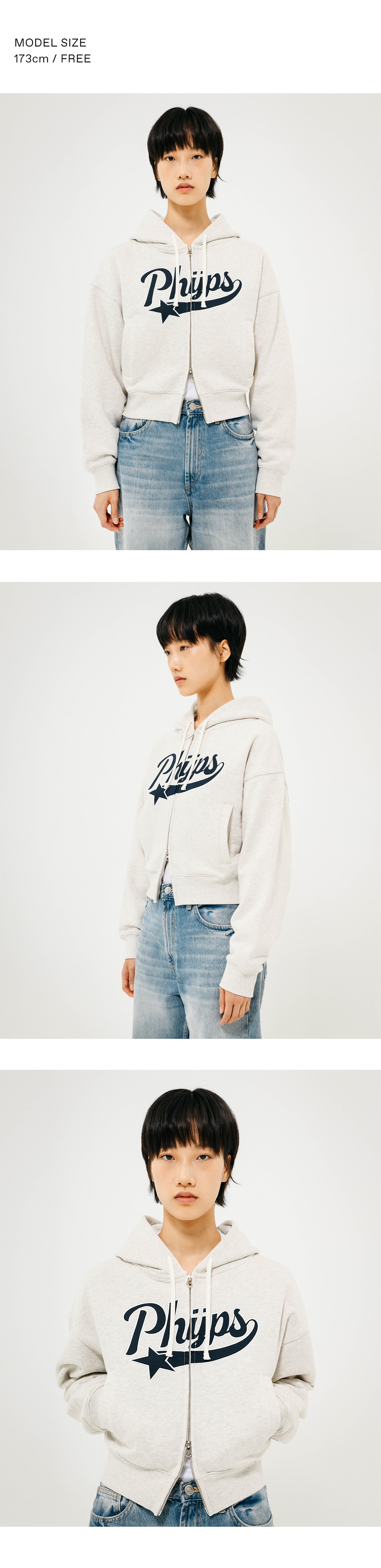 (PHYPS) WOMENS CROP STAR TAIL HOODIE ZIP UP | 3color