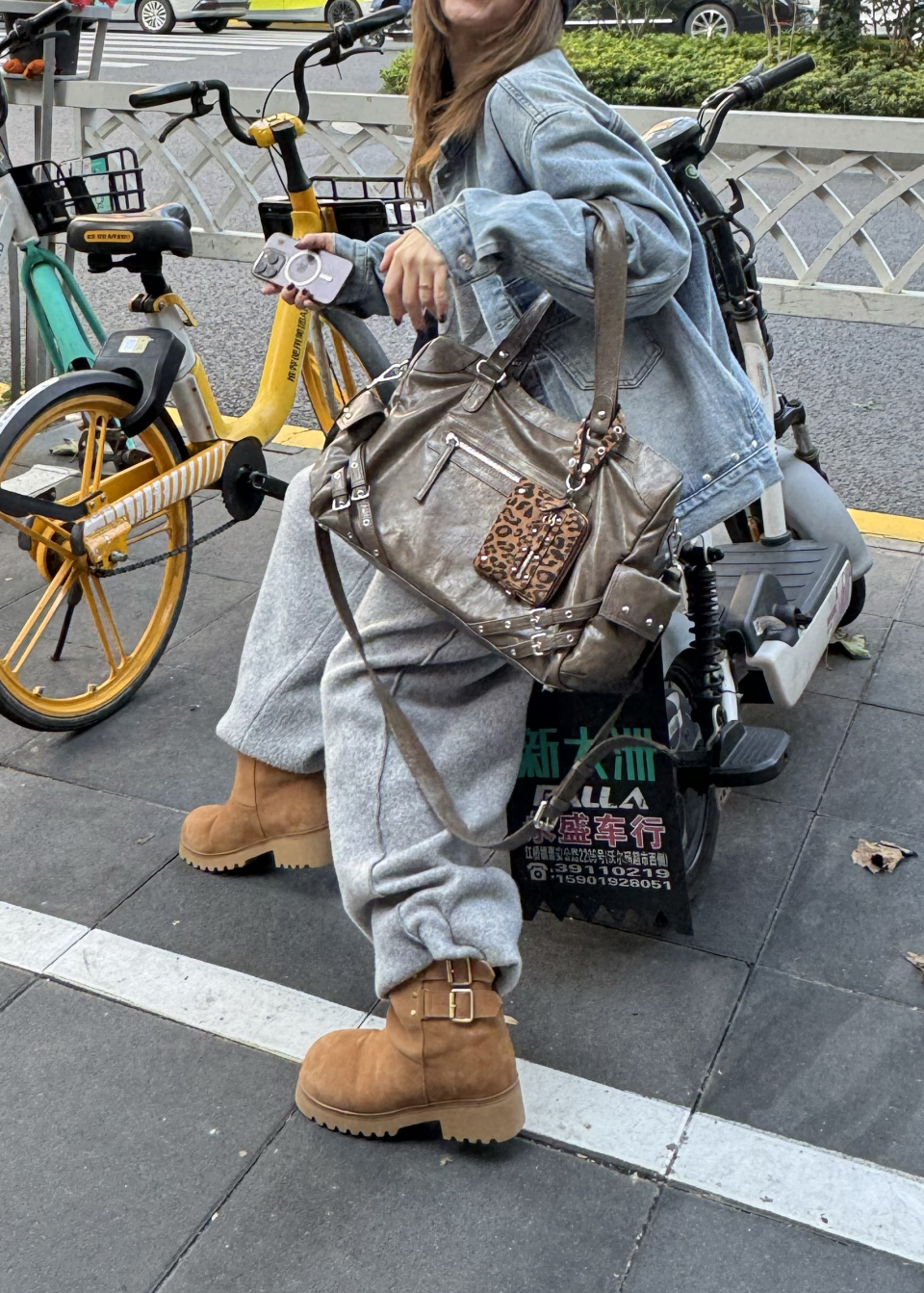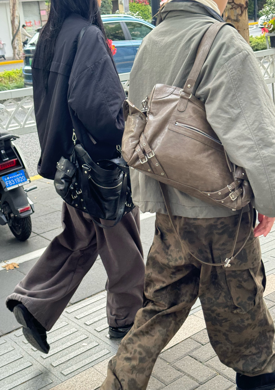 (DEINET) STUD POCKET BIG BAG IN KHAKI