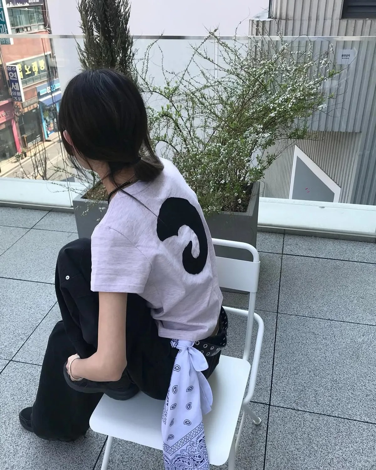 (TANSAN) W Horn Applique T-Shirt - 4col