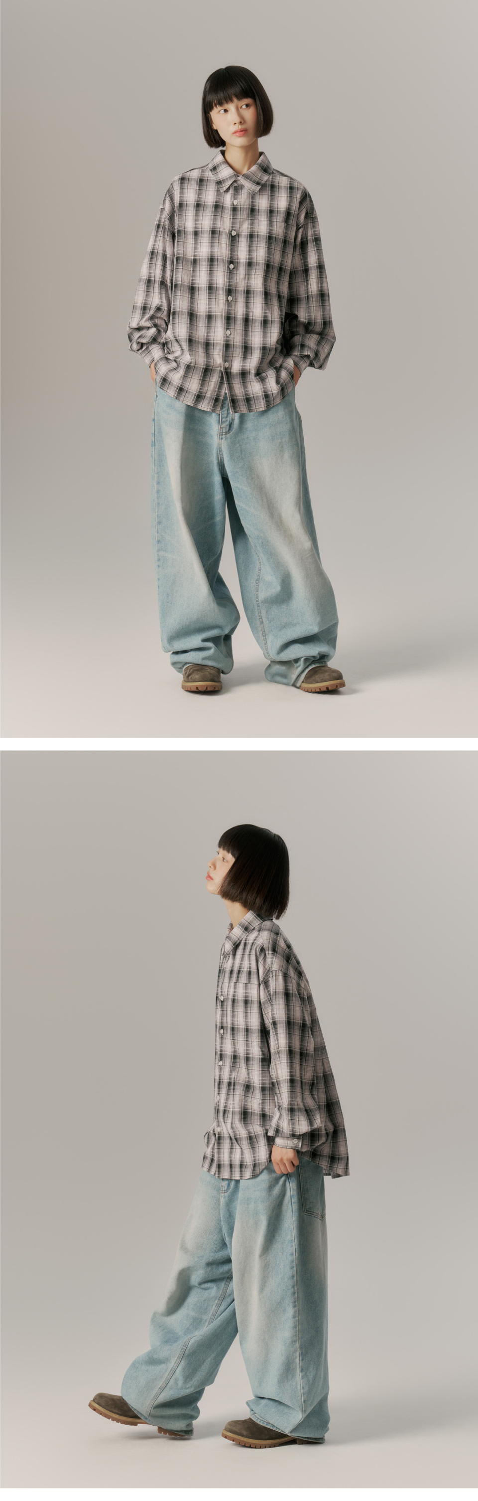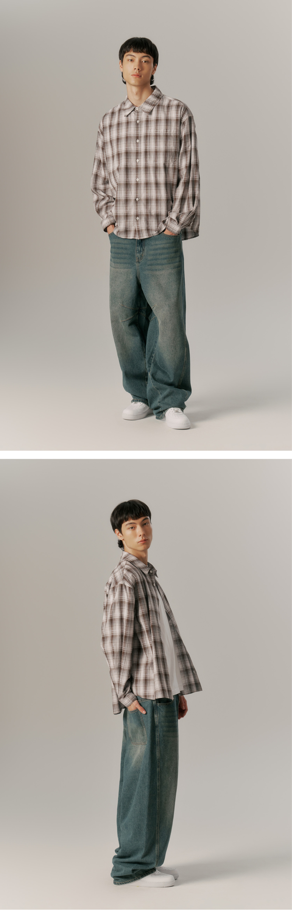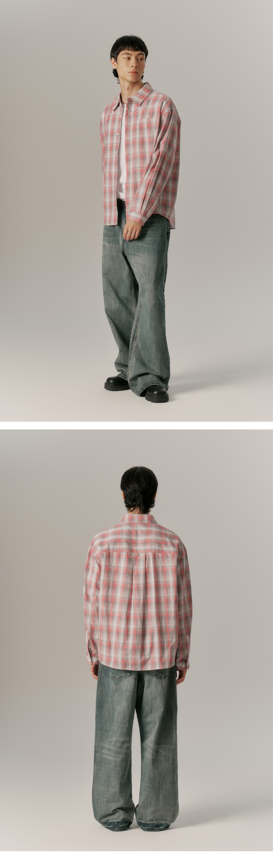 (URBANDTYPE) Oversized Check Pocket Shirt | 4color