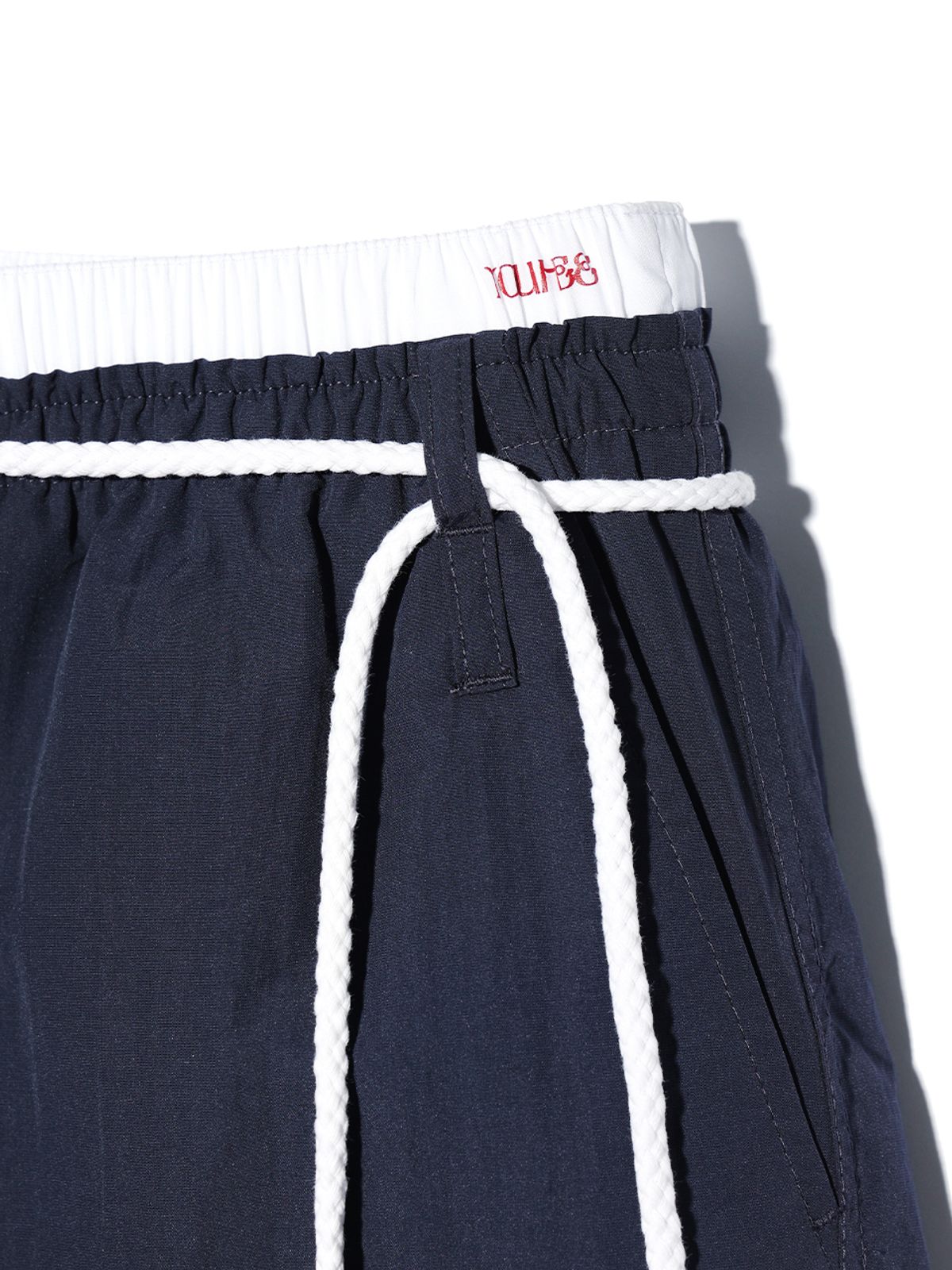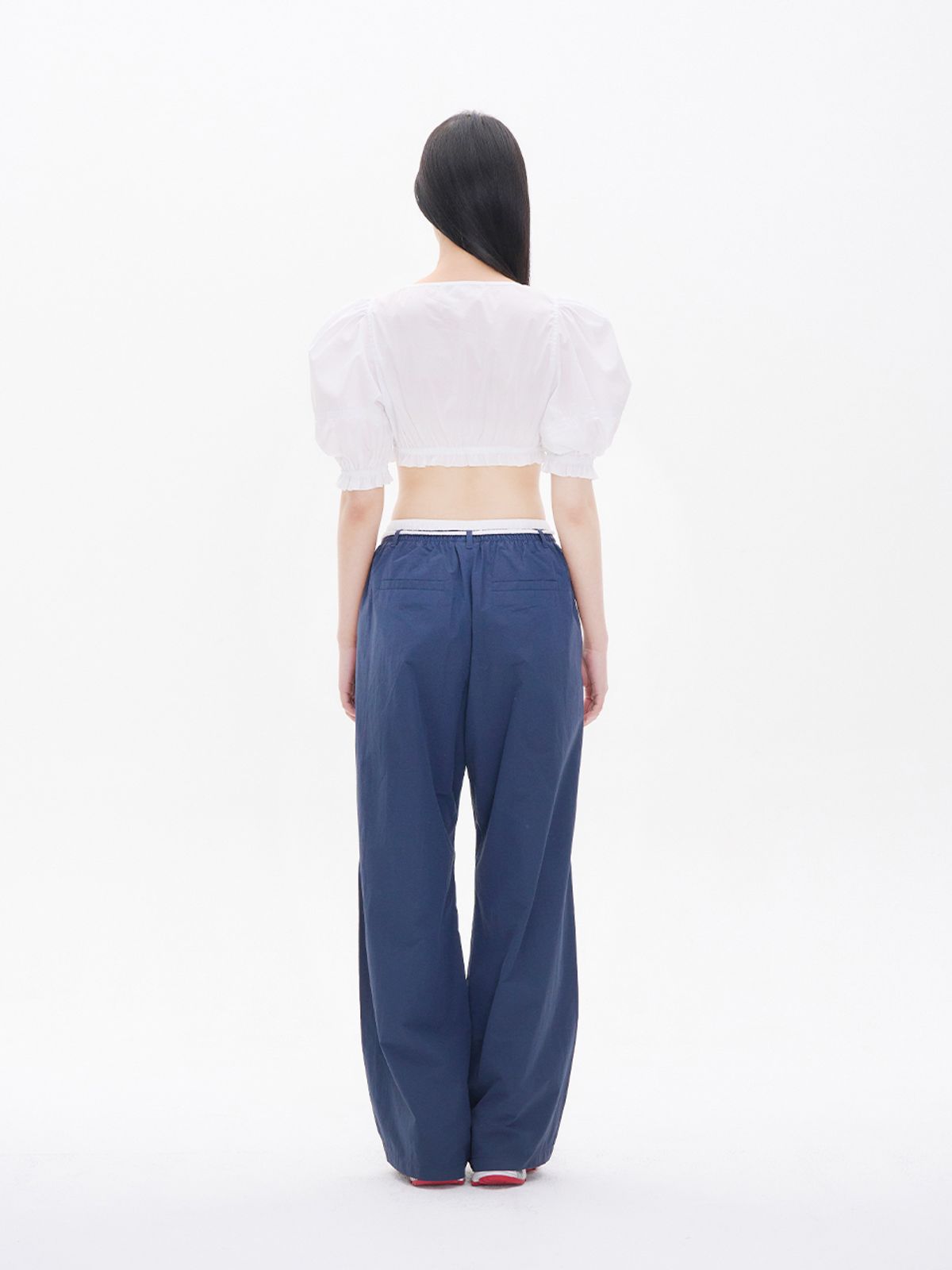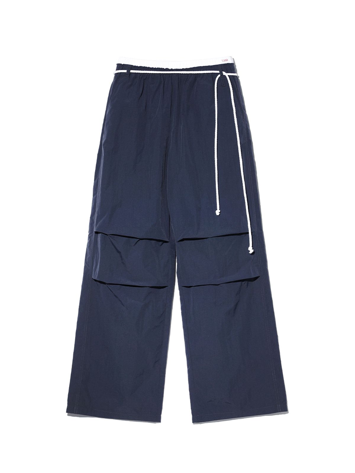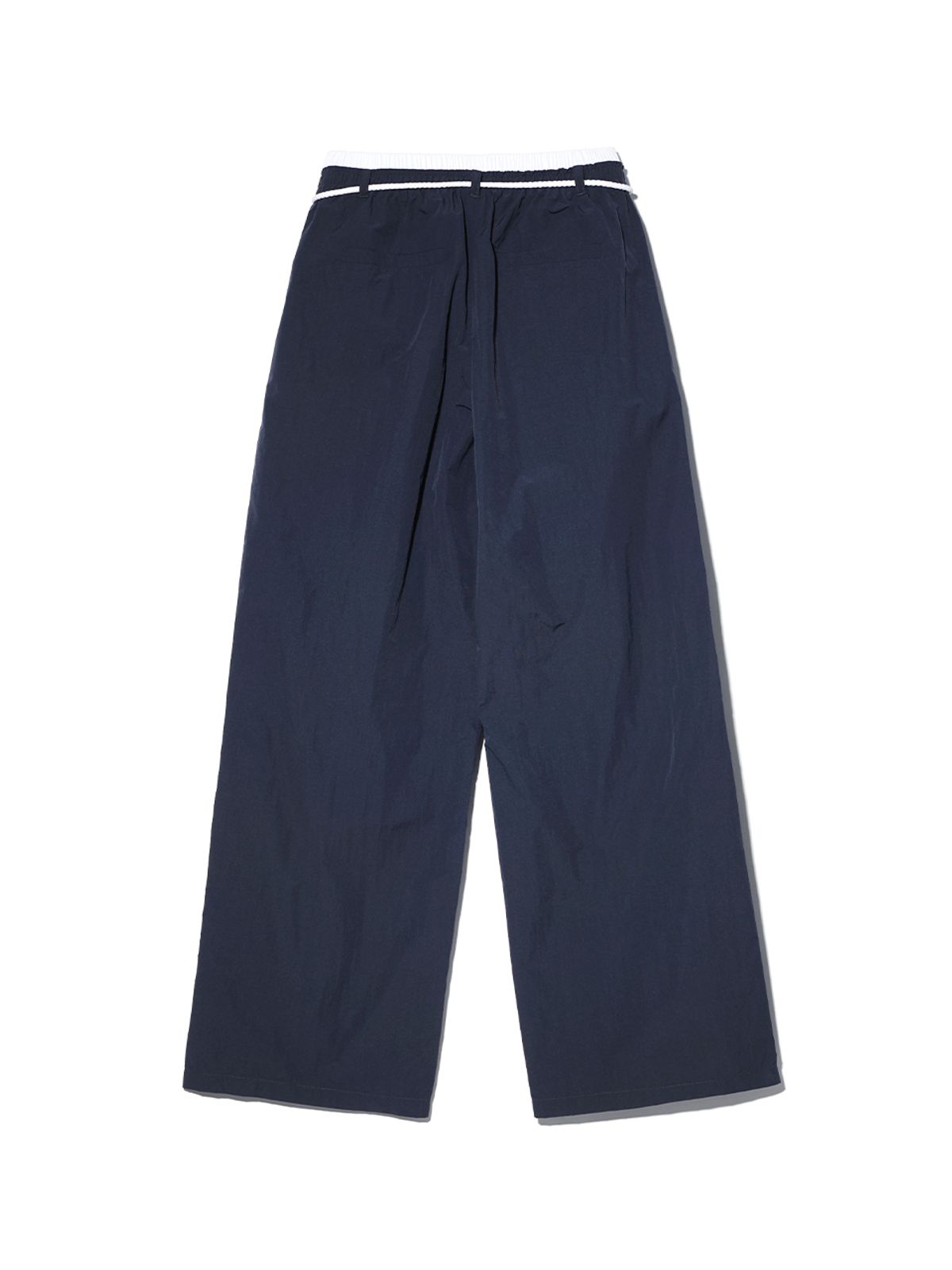 (YOUHEE) COTTON LAYERED BANDING WIDE PANTS NAVY