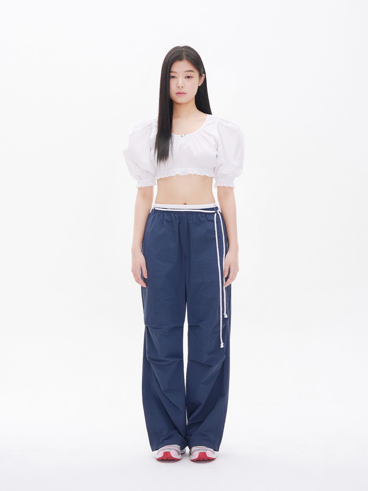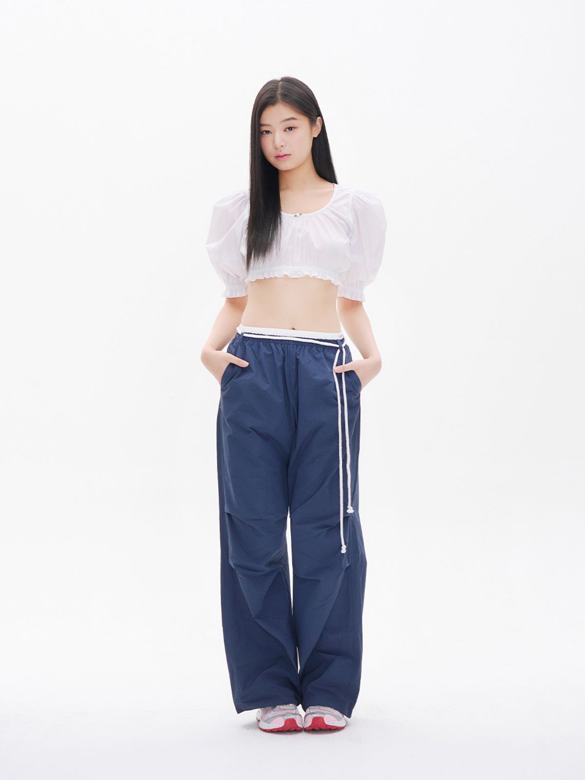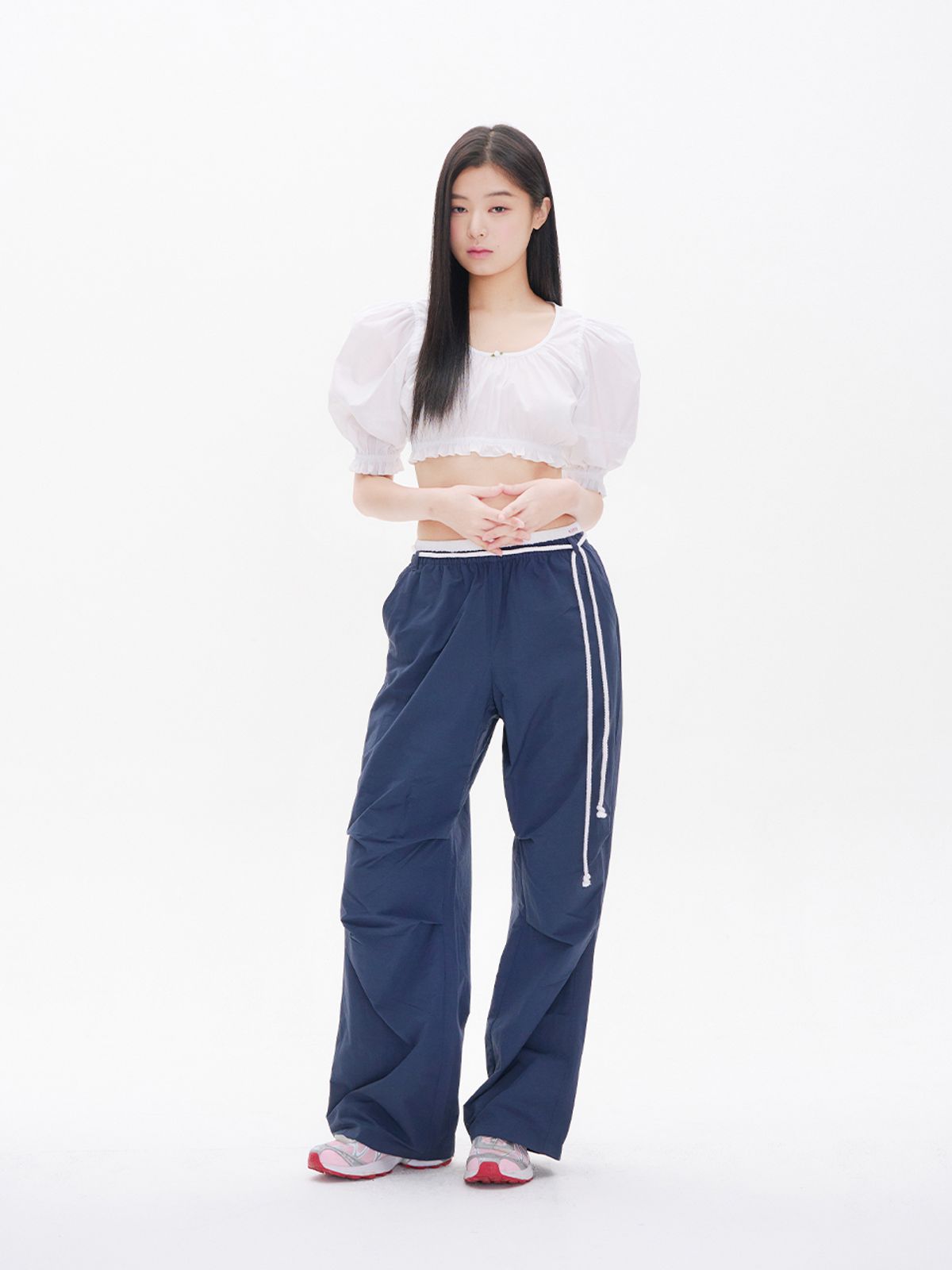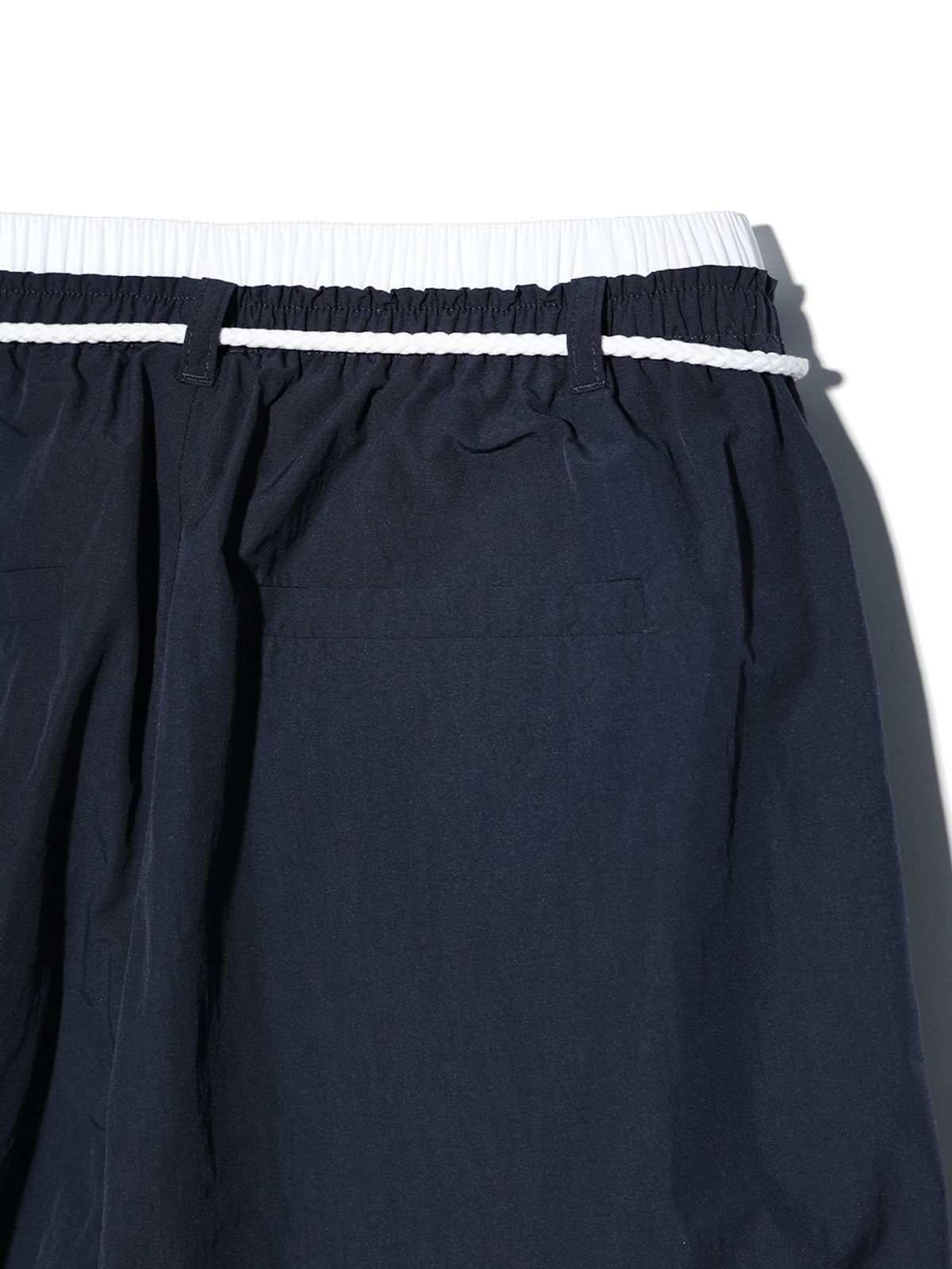 (YOUHEE) COTTON LAYERED BANDING WIDE PANTS NAVY