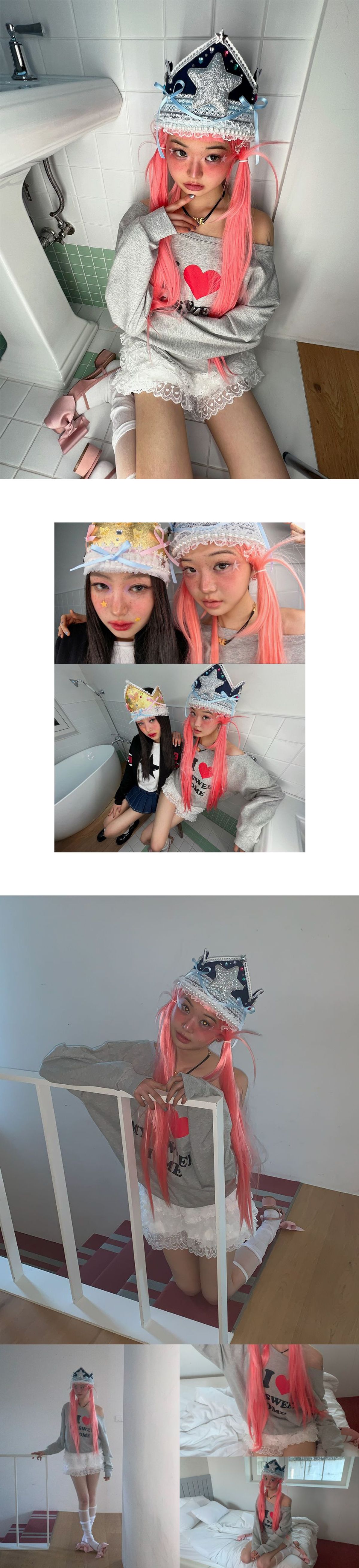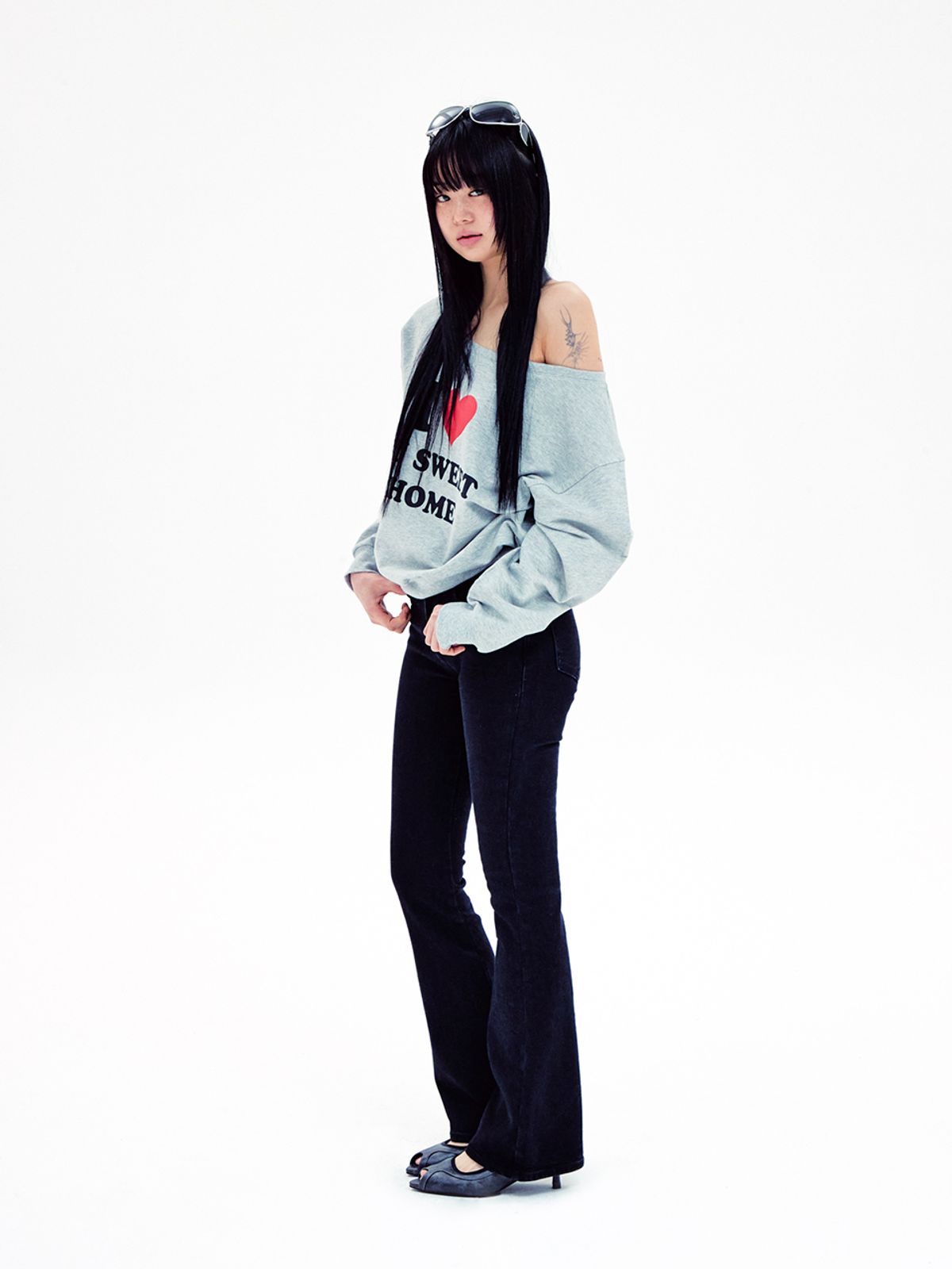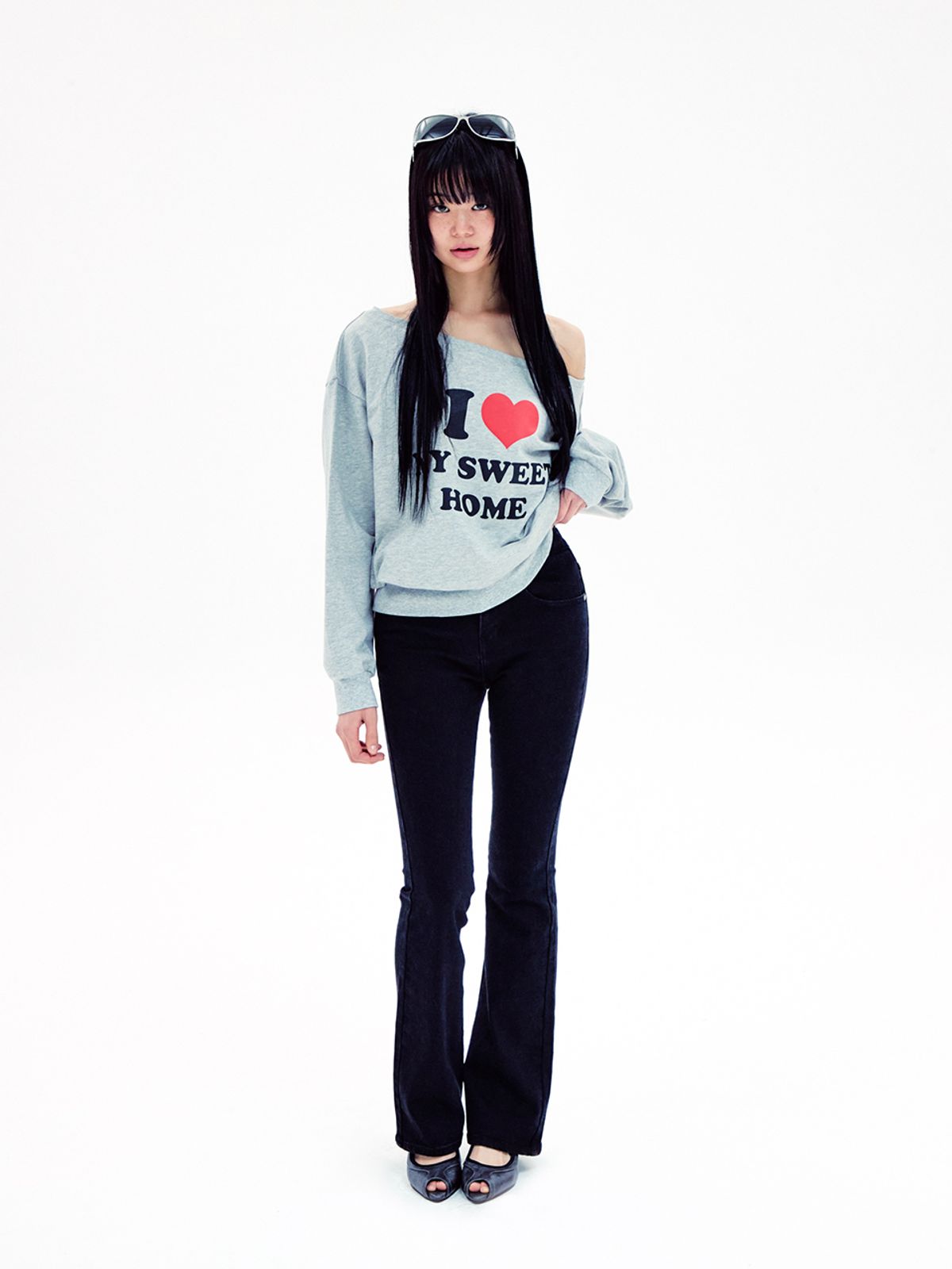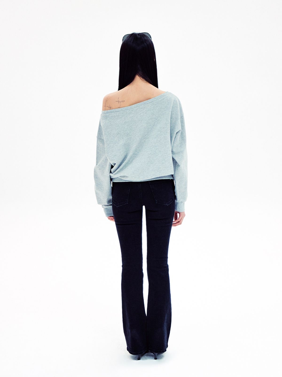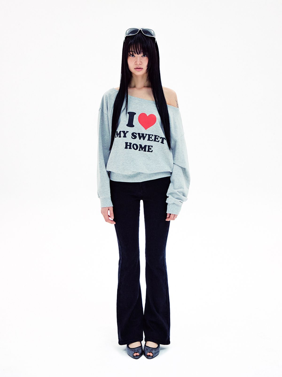 (YOUHEE) I LOVE OFF SHOULDER SWEATSHIRTS MELANGE GREY