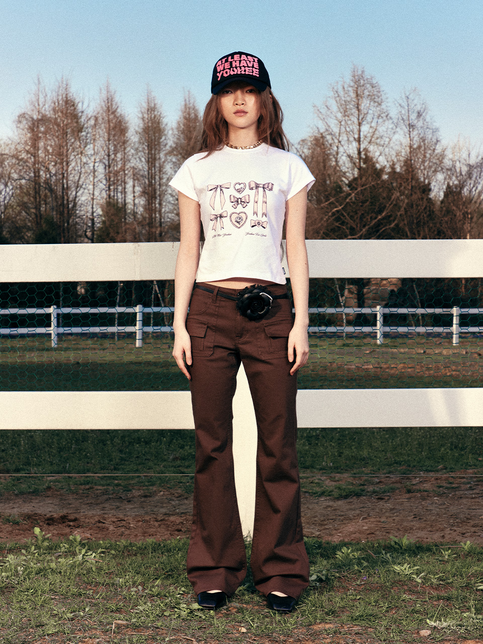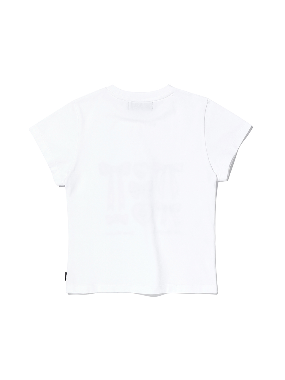 (YOUHEE) RIBBON GRAPHIC CROP T-SHIRTS WHITE
