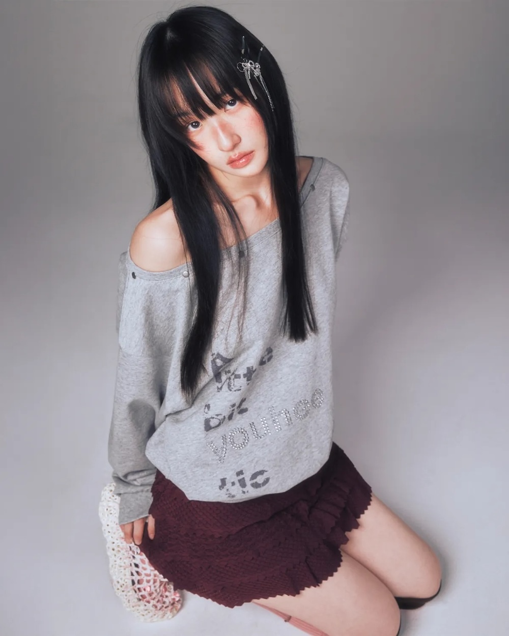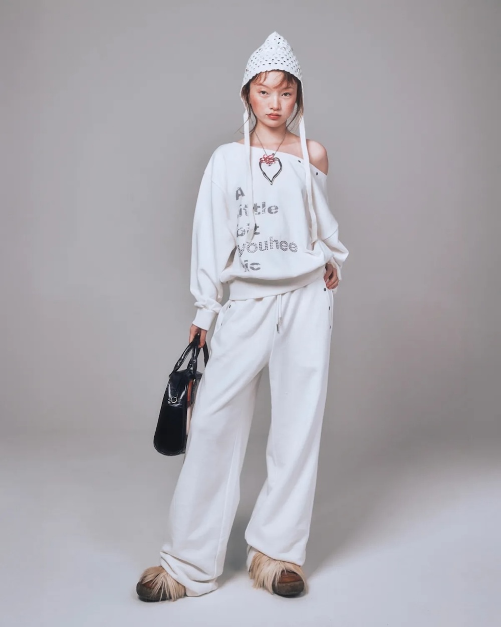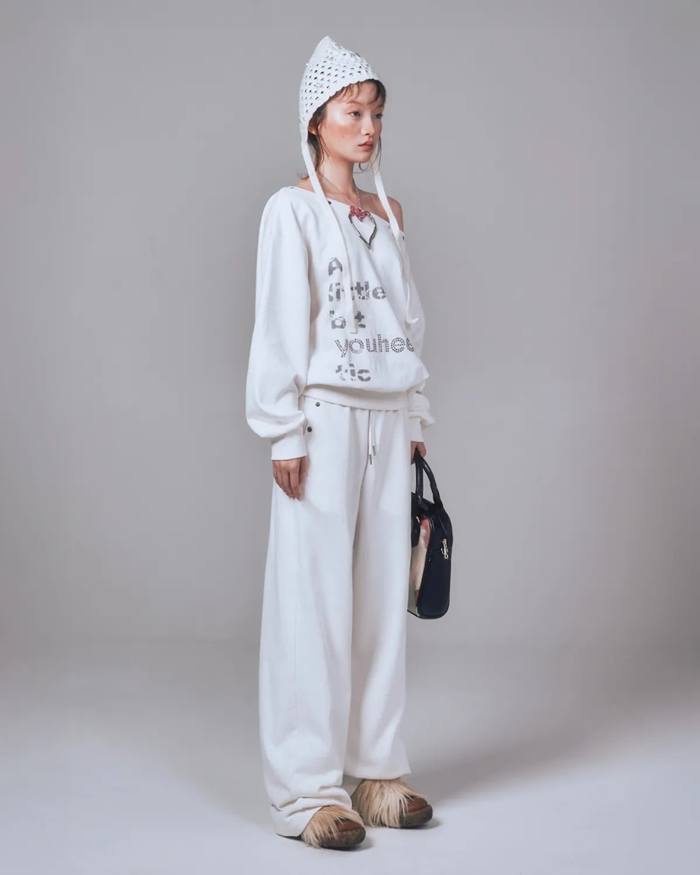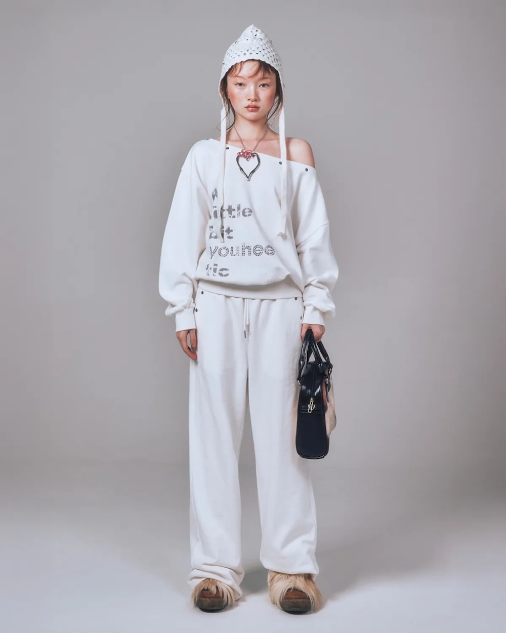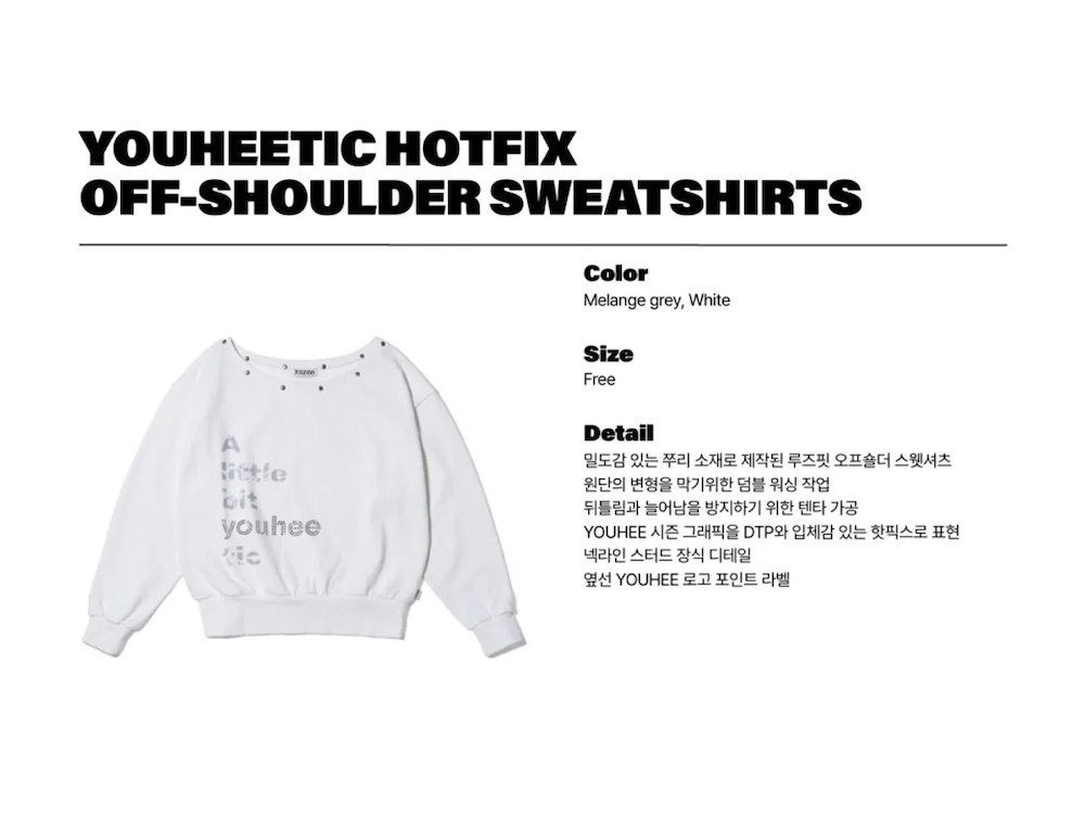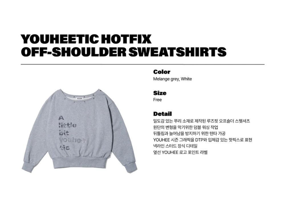 (YOUHEE) YOUHEETIC HOTFIX OFF-SHOULDER SWEATSHIRTS - 2col