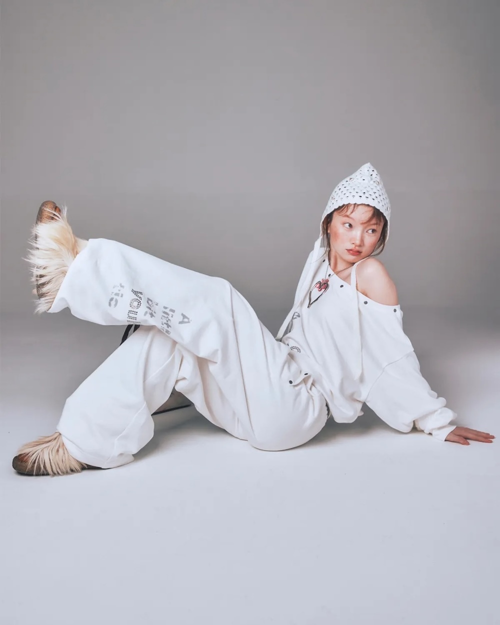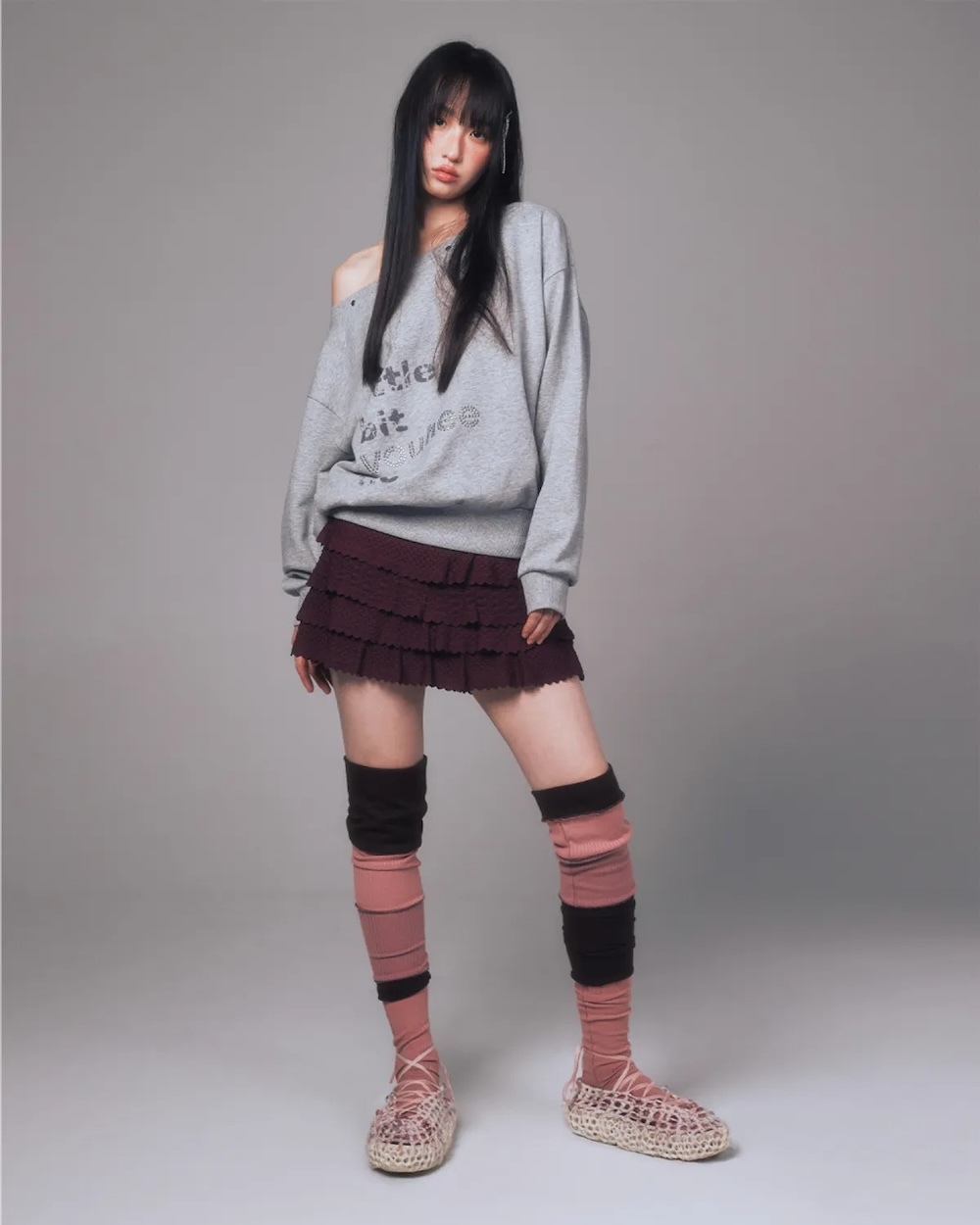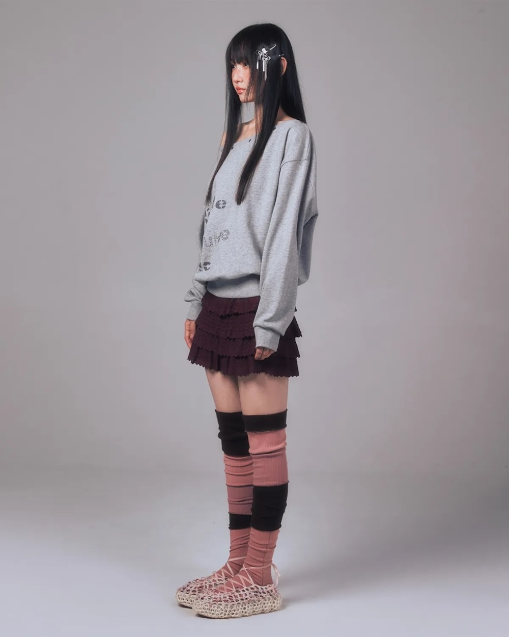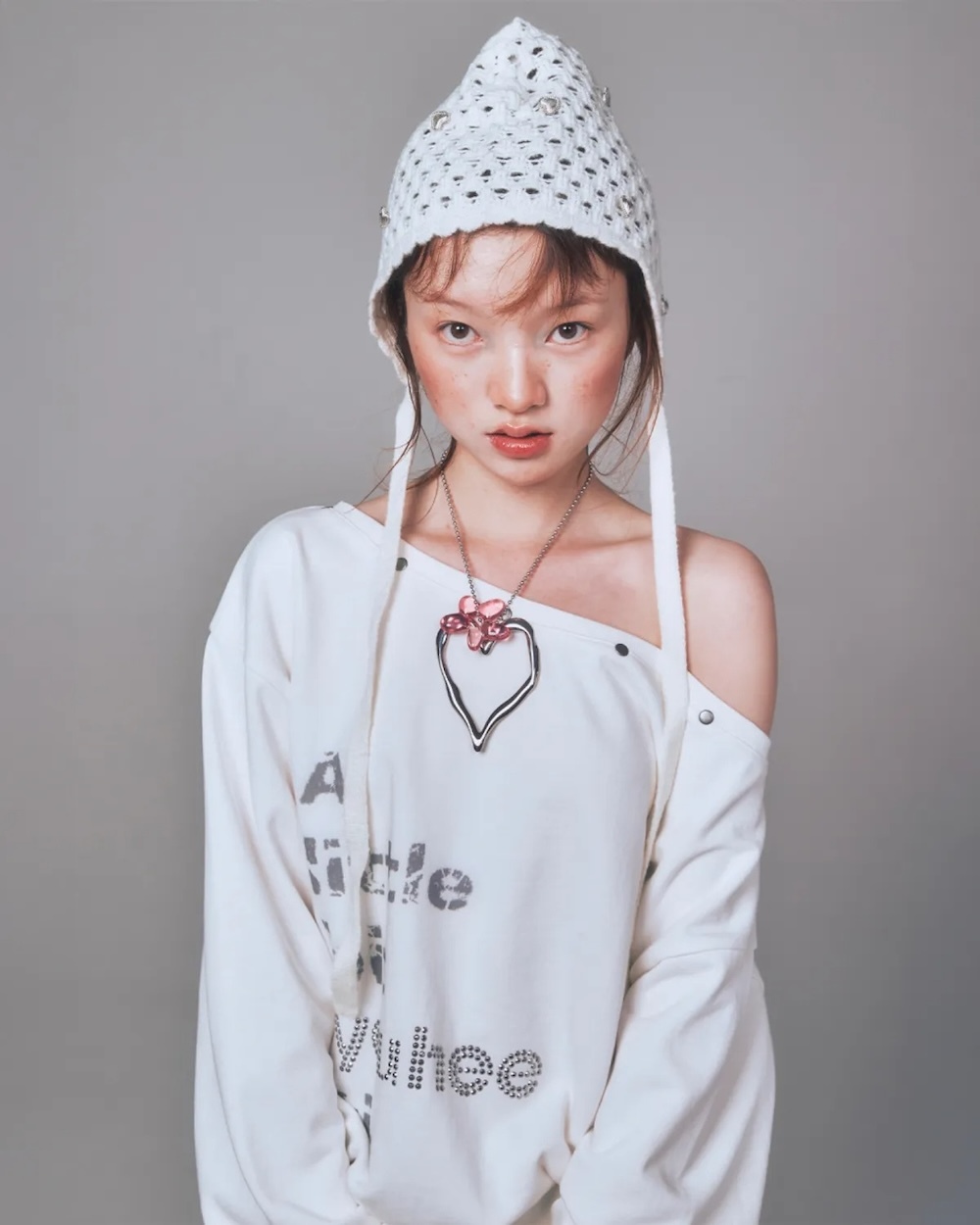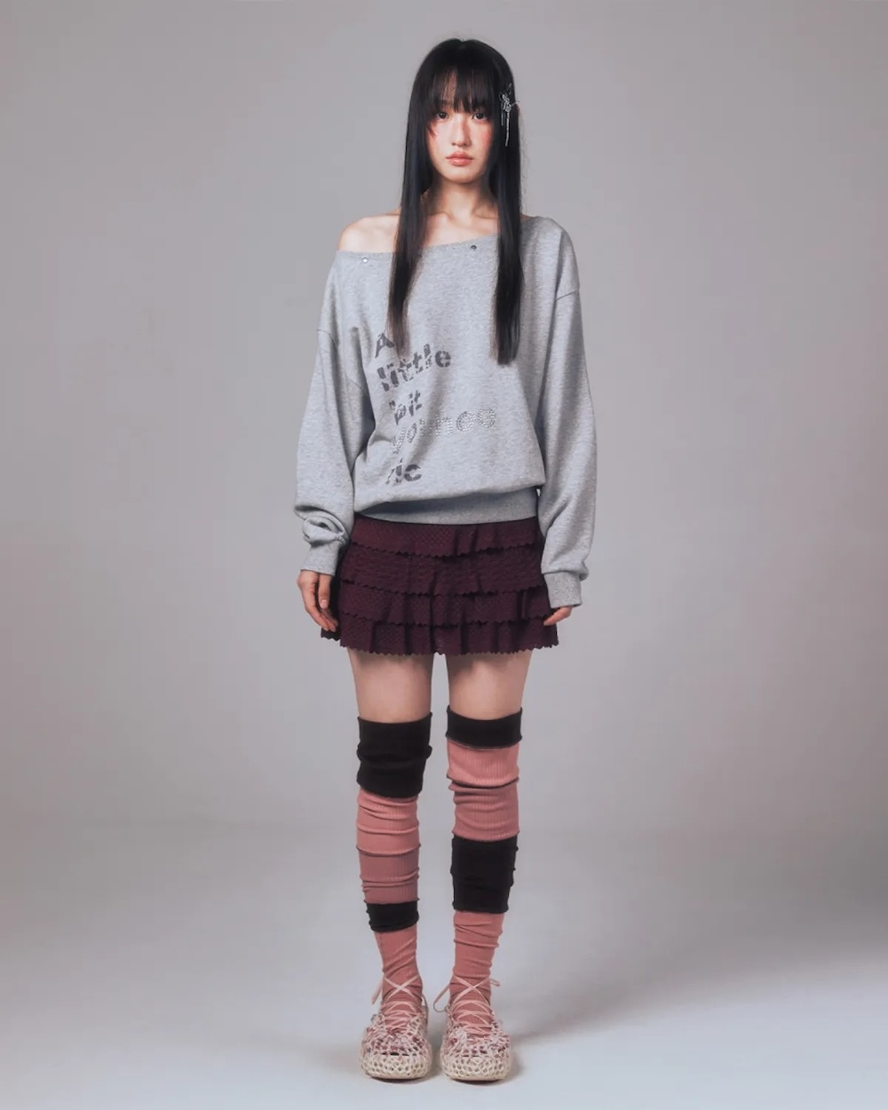 (YOUHEE) YOUHEETIC HOTFIX OFF-SHOULDER SWEATSHIRTS - 2col