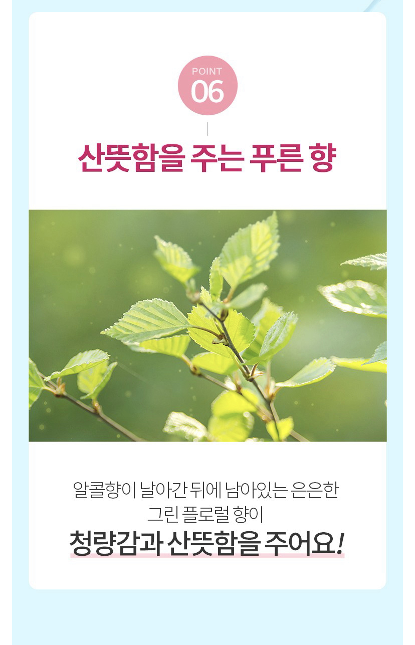 ✔️ 酒精香散去後殘留的淡淡綠色花香帶來清涼感和清爽感!